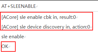 由于指令执行时序异步,“OK“和其他业务上报打印的先后顺序不是固定的,且涉及BLE/SLE TRX业务的指令,回复”OK”不代表指令正常执行。