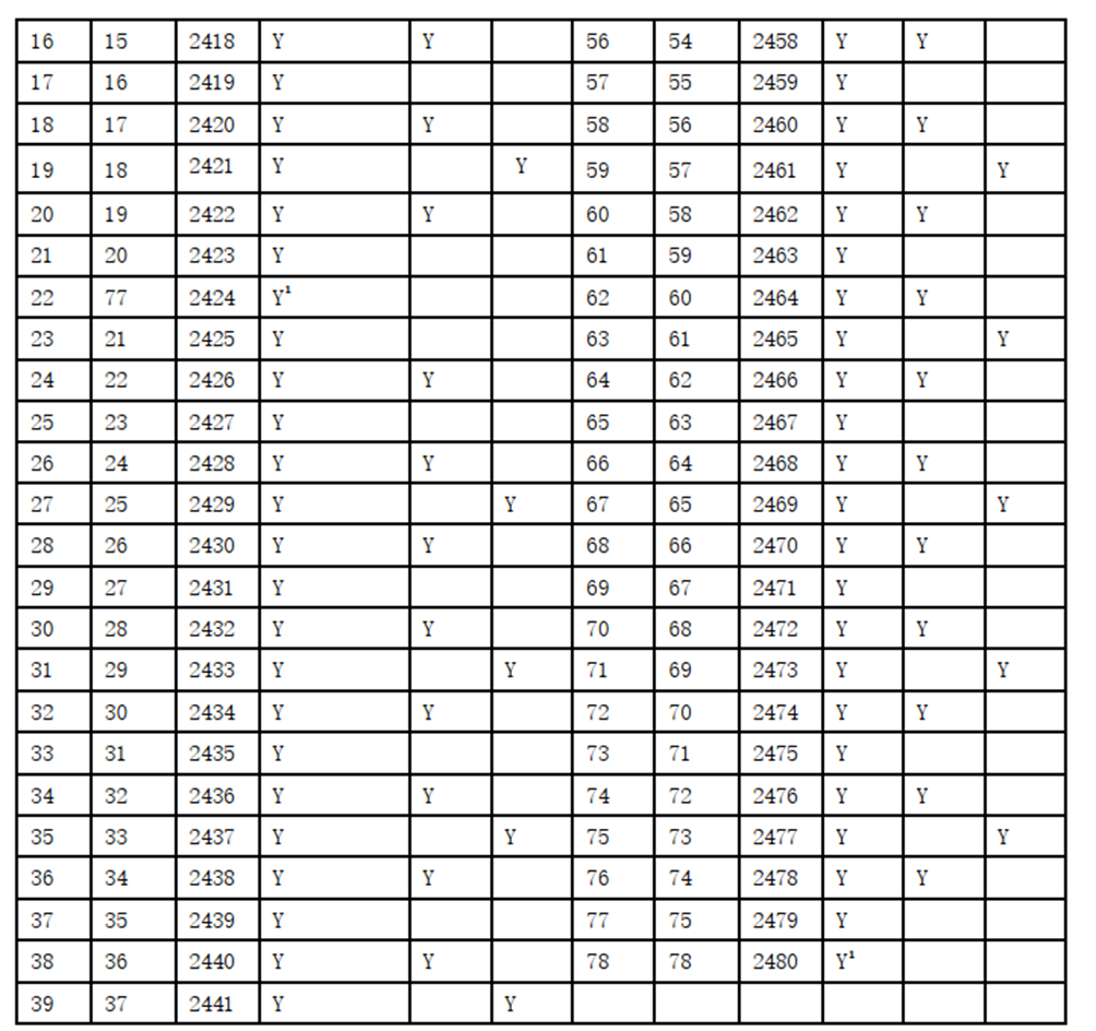 图 2 2400MHz频段不同带宽信道对应的射频信道中心频率和射频信道号2
