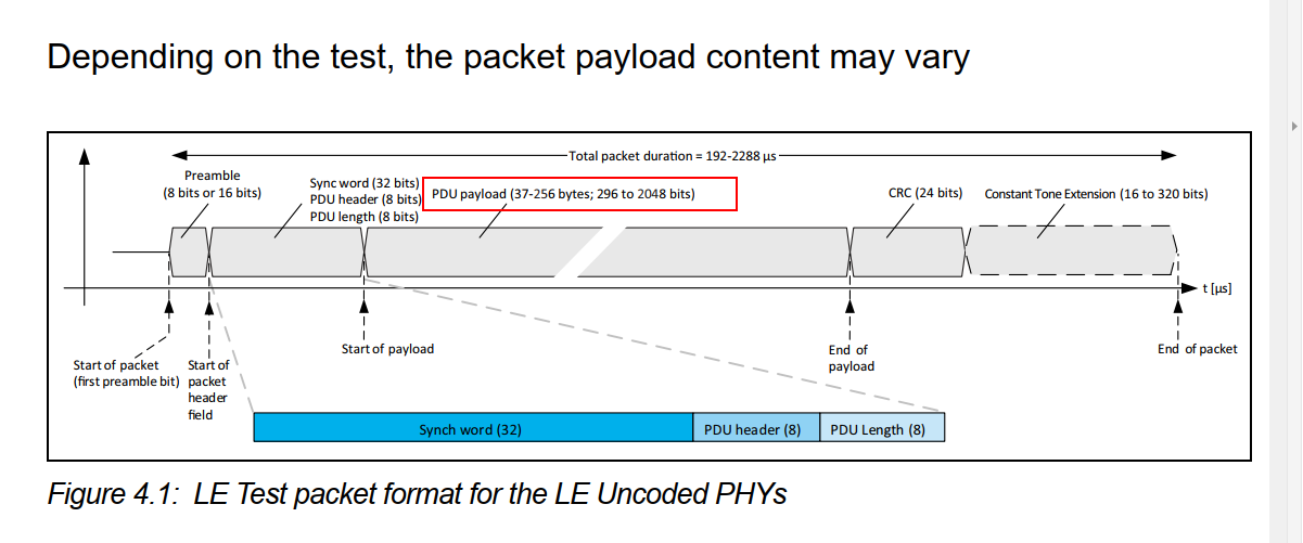 说明: 注意不同带宽的射频测试项需要测的频点不同,例如SLE 4M GFSK指令,测试低频的频点为2405MHz,而不是2402MHz。