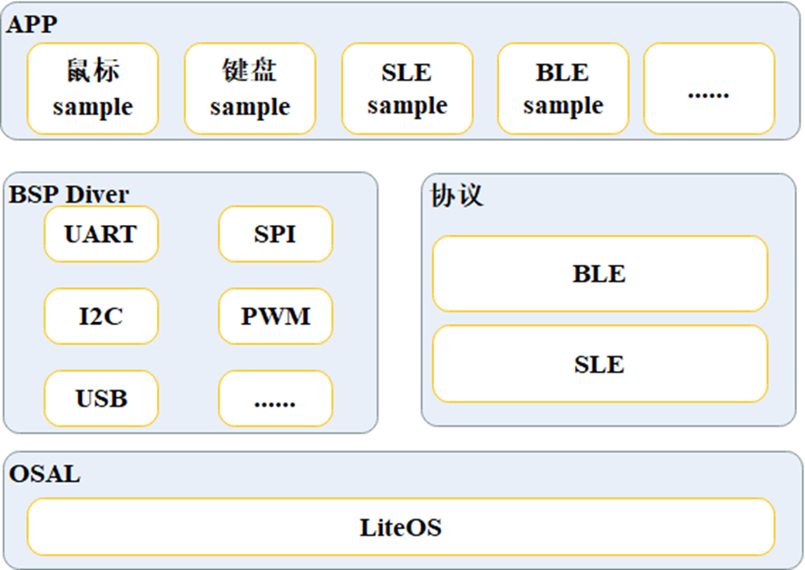 ├── kernel # 内核代码,包括nonos、osal;cmsis包含在内核代码中