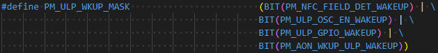 多个IO口绑定到一个mask接口:void ulp_gpio_mask_pin_set(ulp_gpio_wk_t wk_sel, uint32_t pin_map),ulp_gpio只能注册8个中断,如果多于8个IO口要响应唤醒中断,需要使用该接口将多个IO口绑定到一个mask上,参数pin_map每个bit对应一个IO(bit0即s_mgpio0),对应bit为1即表示选定对应IO。