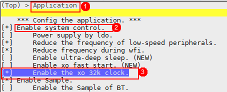 SDK中提供了观测32K时钟的接口:uapi_clock_control(CLOCK_CONTROL_32K_TEST_ENABLE, xxx),即使用Pin xxx口观测32K时钟,该接口使用时需打开宏“CLOCK_TEST_ENABLE”。