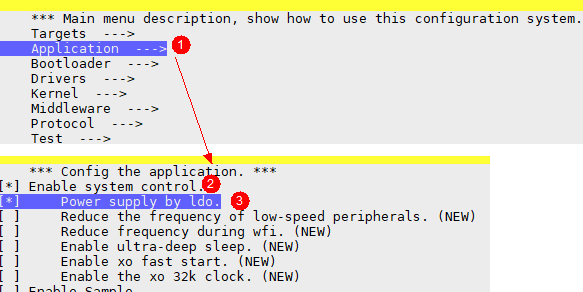 默认SDK版本为BUCK模式,使用LDO模式时需打开宏(CONFIG_POWER_SUPPLY_BY_LDO),配置如下: