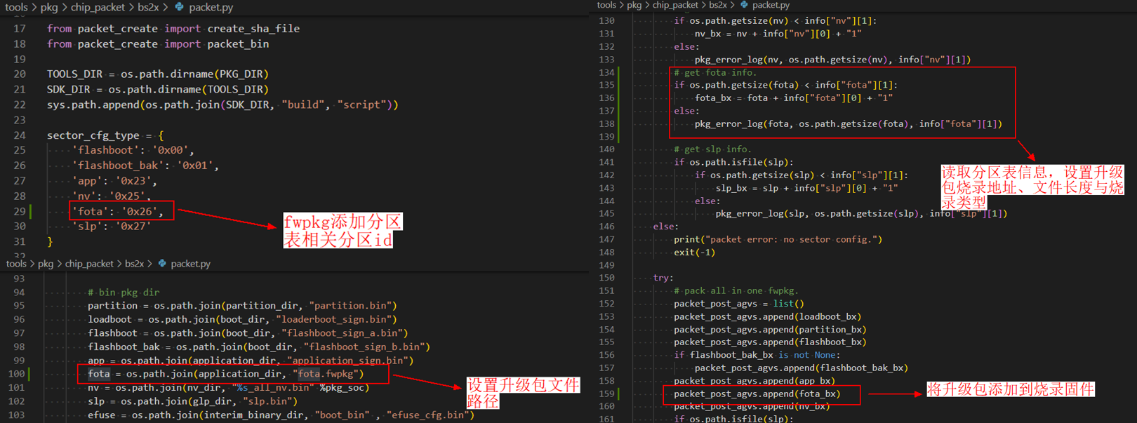 说明: 以上代码,用户需要调整变量fota_len和fw_num,fota_len为升级包大小,fw_num为升级包中固件个数,比如升级包中只包含Application.bin,则fw_num = 1。