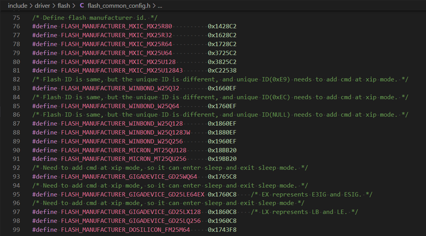 目前BS2X支持的外置Flash选型,详见include/driver/flash/flash_common_config.h,如图1。其他头文件未列出的Flash类型,用户需自行适配。