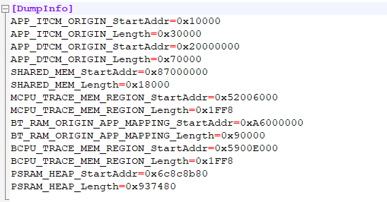 可以将config.ini中的DumpInfo配置项与源码middleware\chips\bx2x\dfx\last_dump_adapt.c中的g_mem_dump_info数组中的元素进行对比。如不一致,则要按照g_mem_dump_info数组的定义修改config.ini中的DumpInfo配置项。