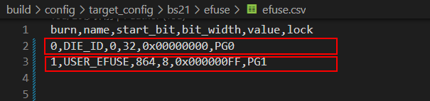 数据准备(路径:build\config\target_config\bs21\efuse\efuse.csv)