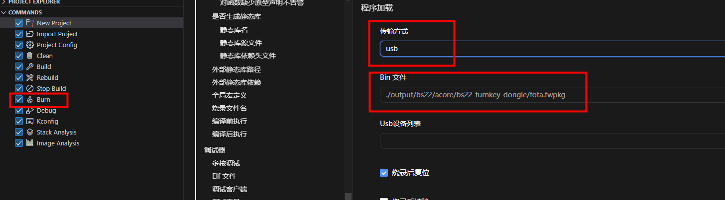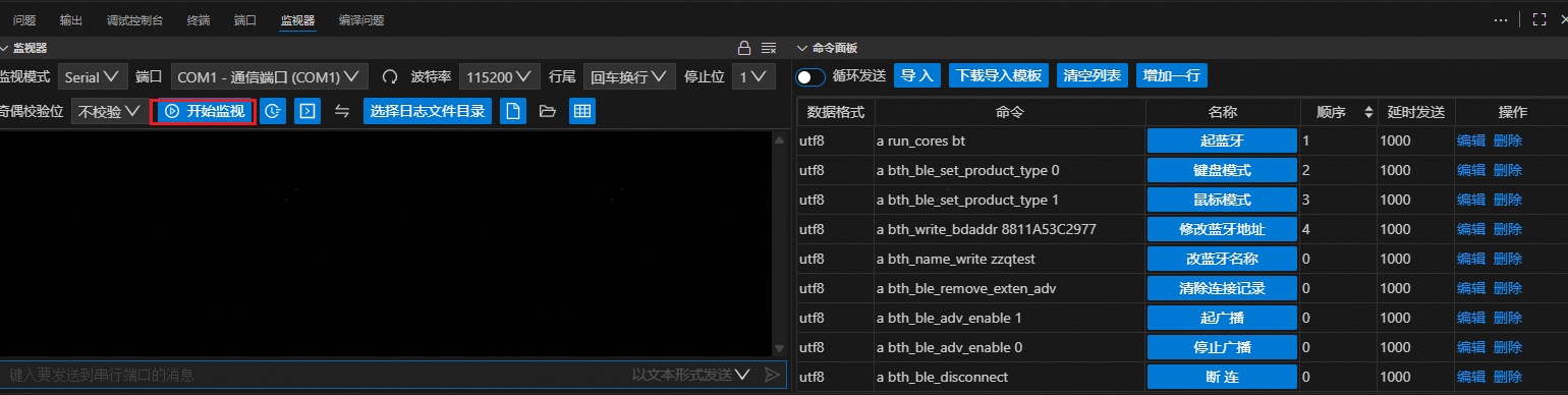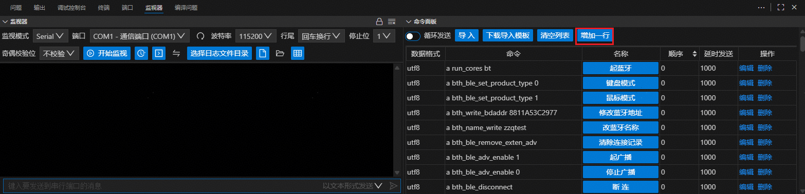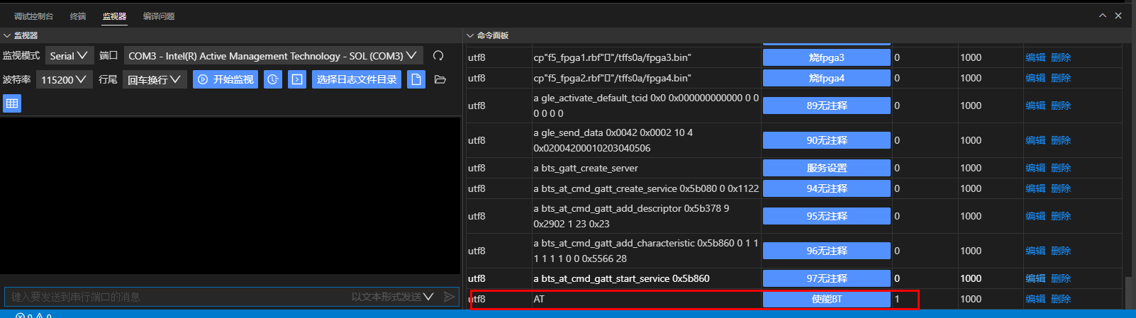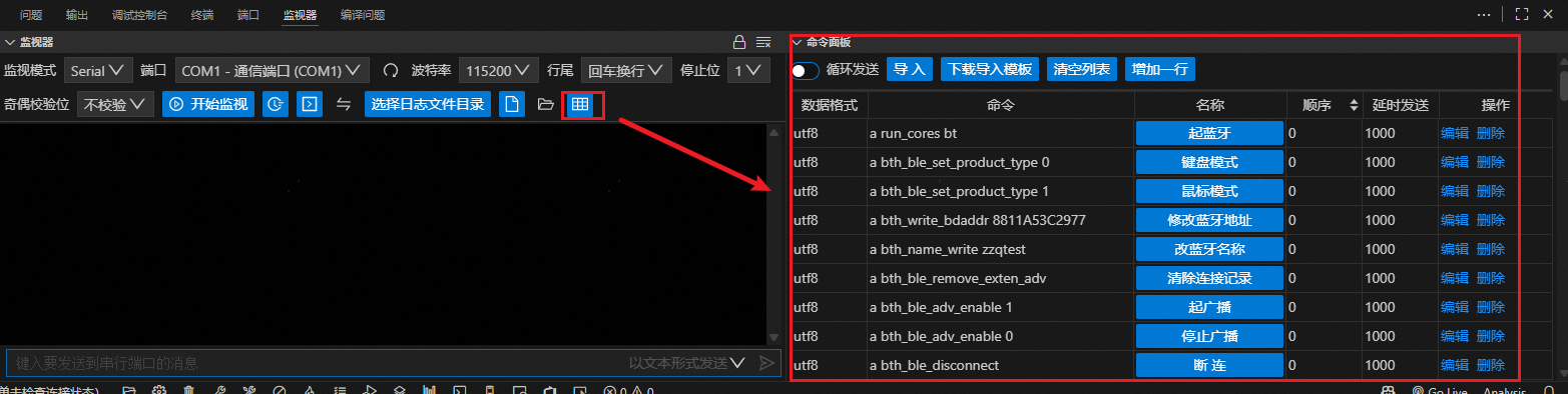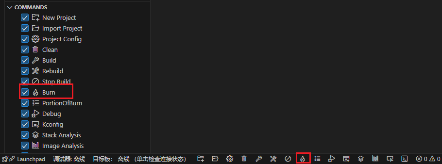 ③ COMMANDS:提供新建工程、打开工程、清除、编译、烧录等功能按钮及控制状态栏中的按钮显隐