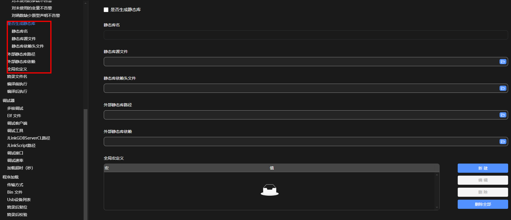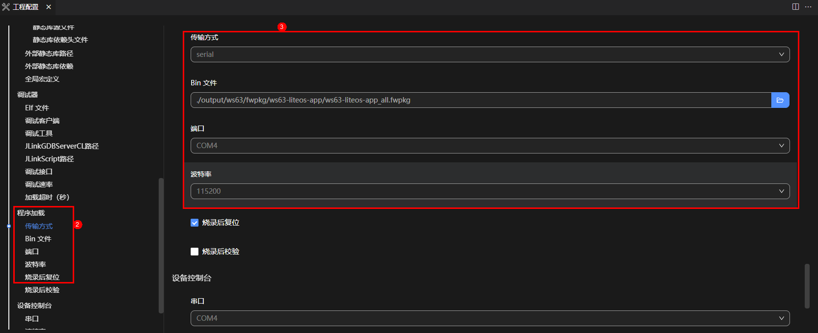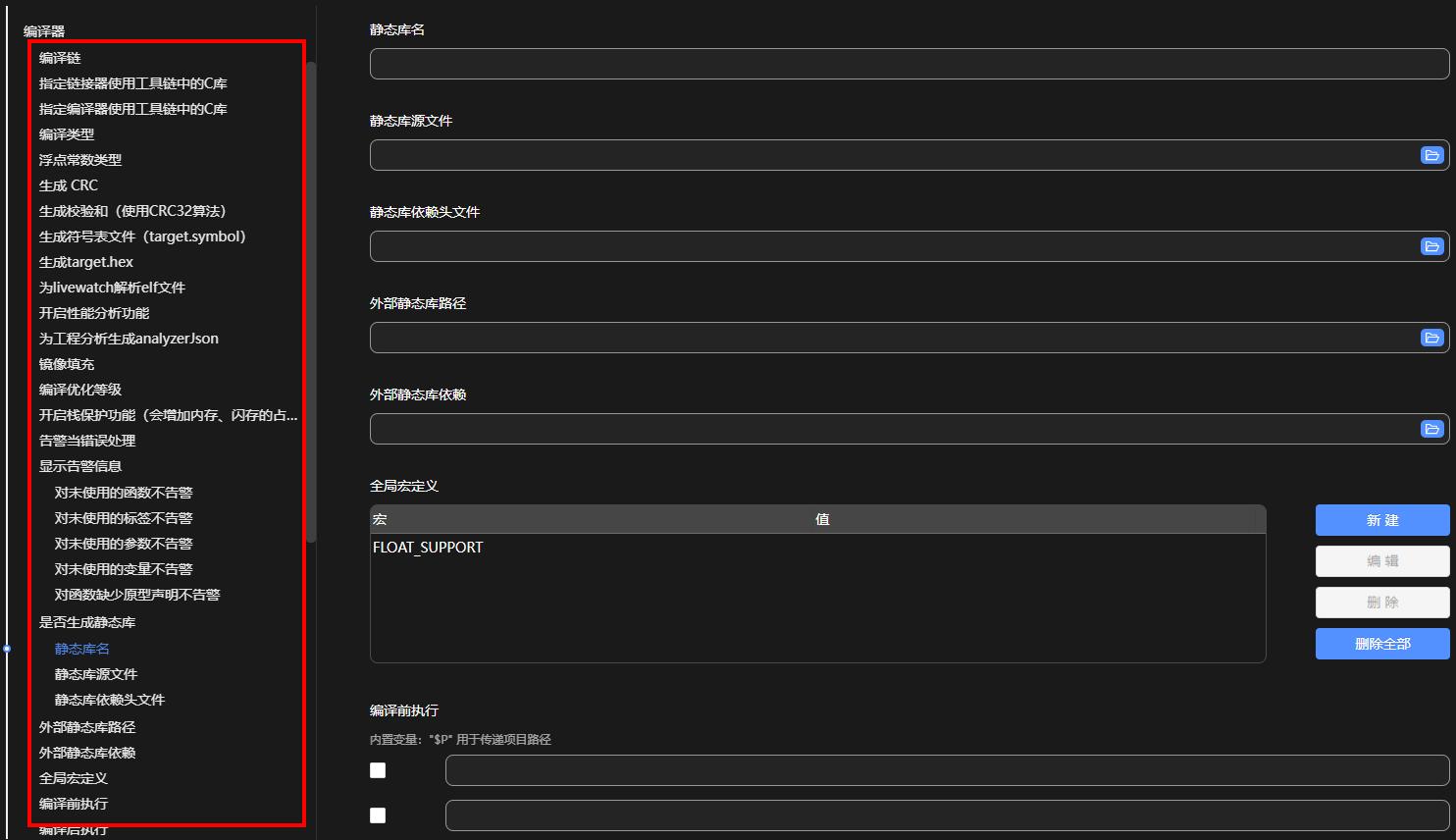 ③ COMMANDS:提供新建工程、打开工程、清除、编译、烧录等功能按钮及控制状态栏中的按钮显隐
