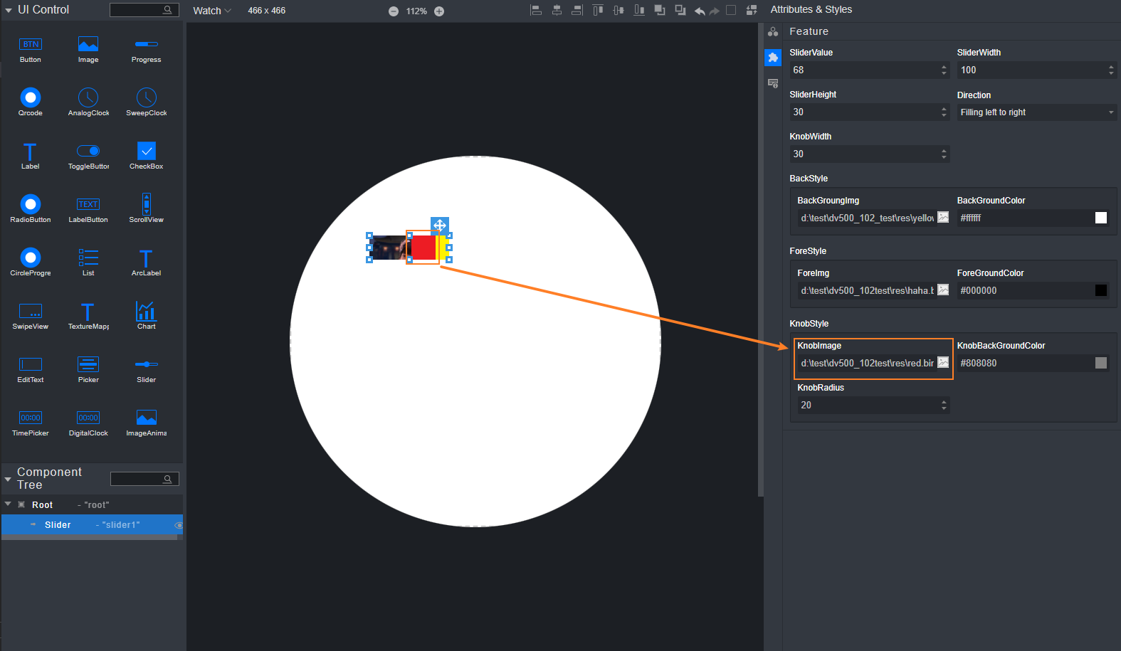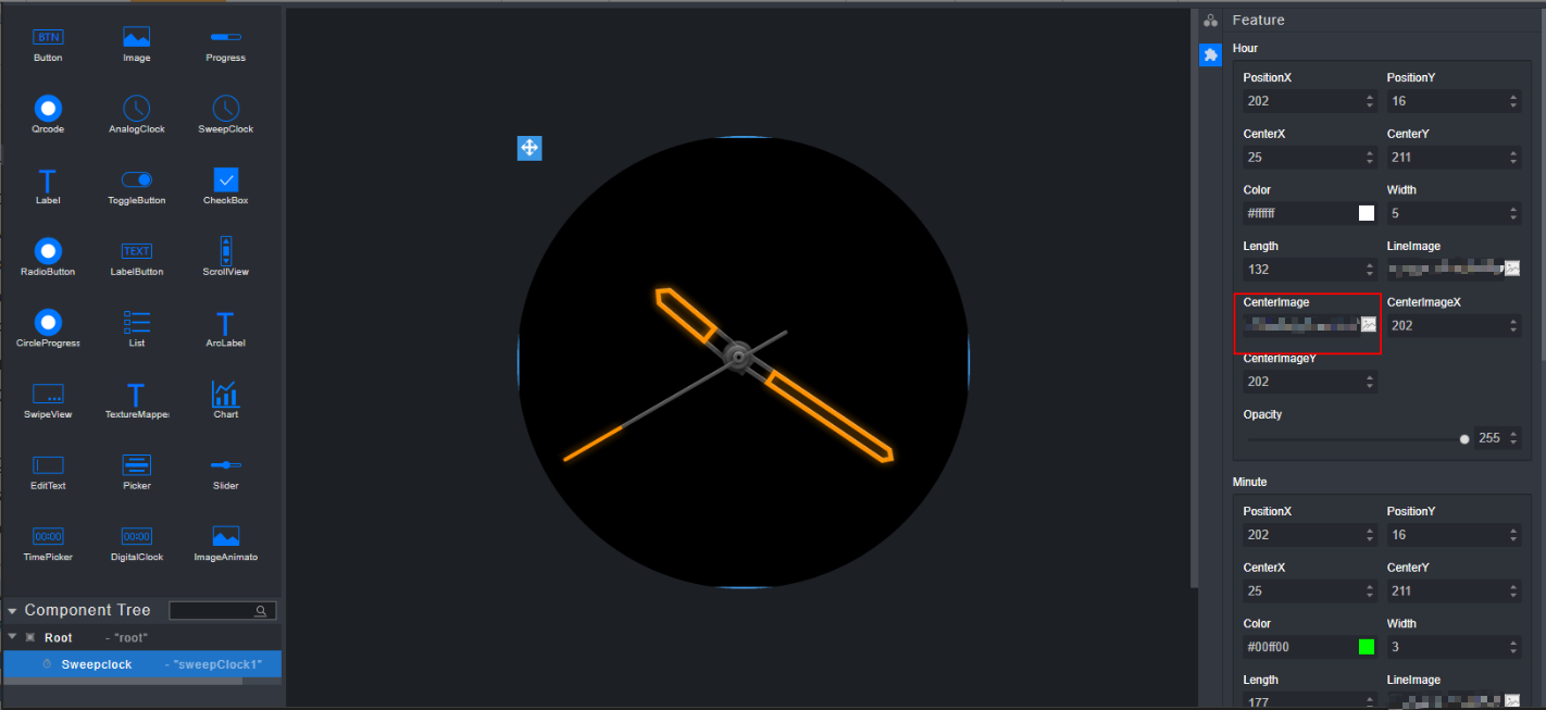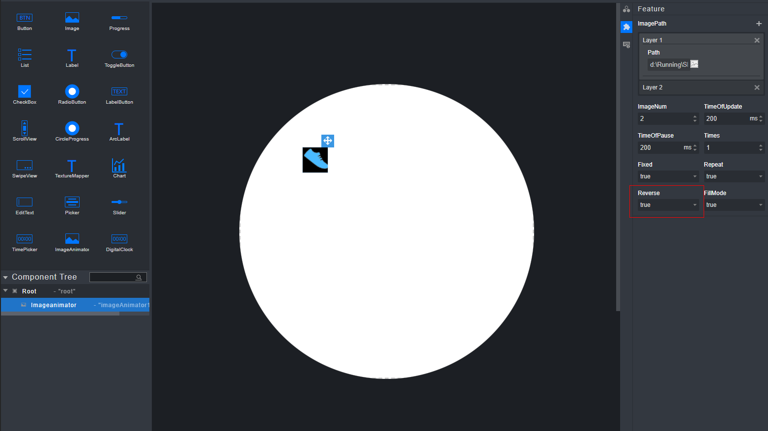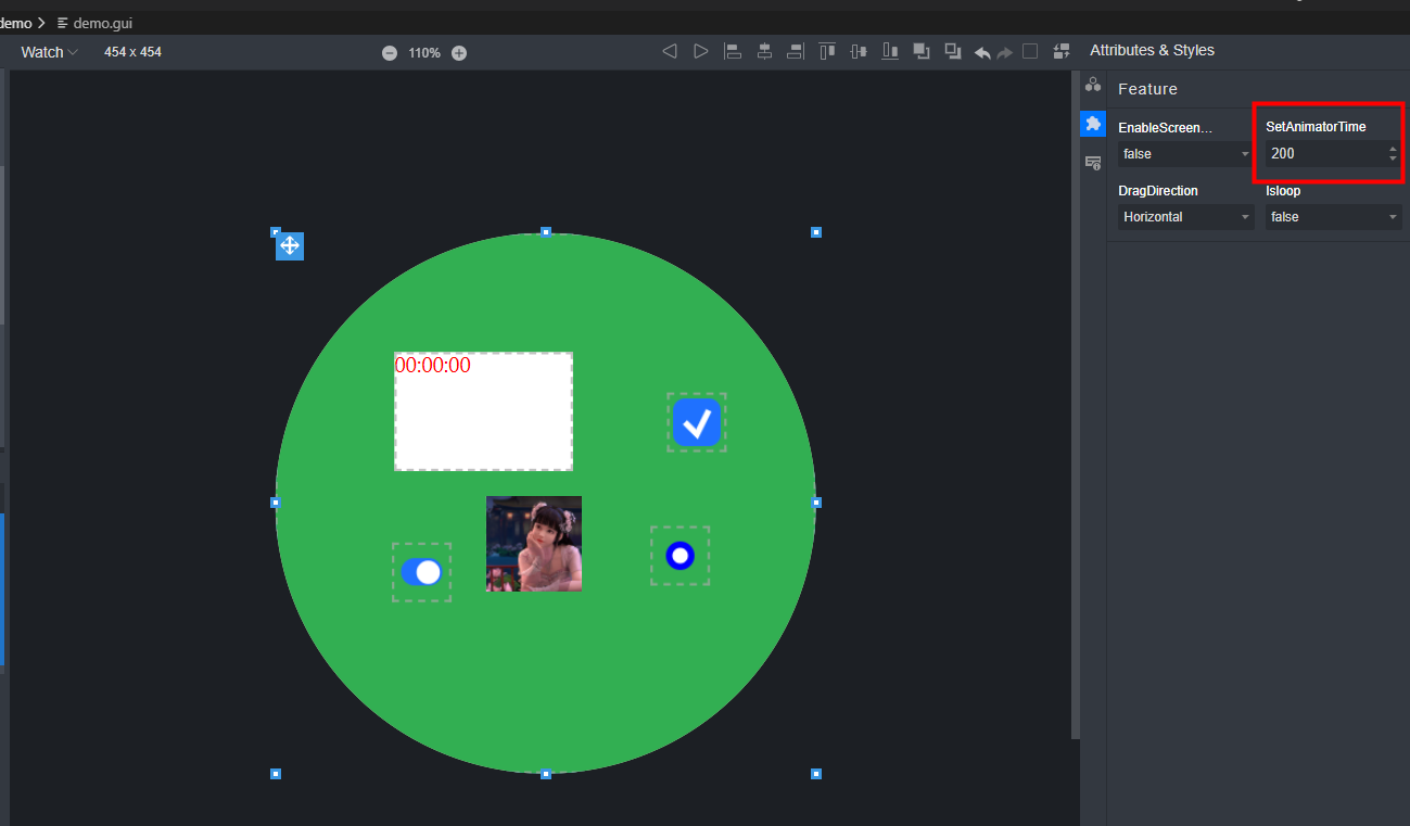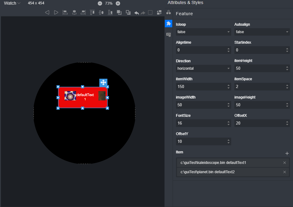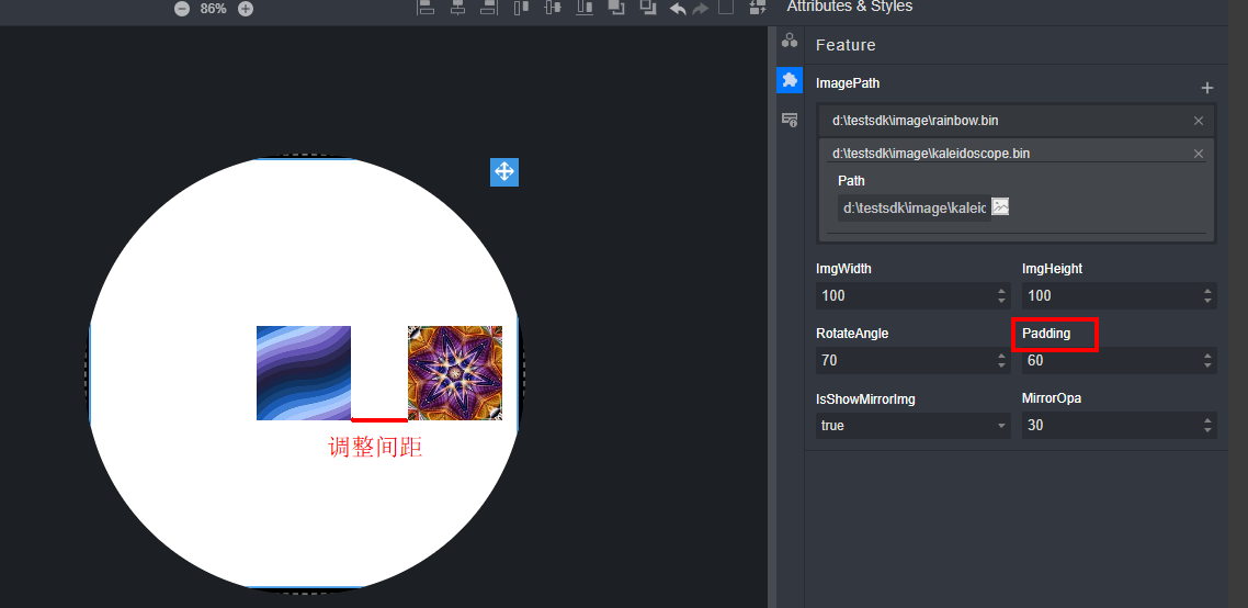 样式图标(Feature),在展开的Feature栏中修改RadioButton组件的SelectedImg属性添加选中时的图片和UnSelectedImg属性添加未选中时的图片,两张图片必须同时存在才会产生渲染效果,通过将SelectedImg和UnSelectedImg属性恢复成空(手动删除),可以实现图片的删除。