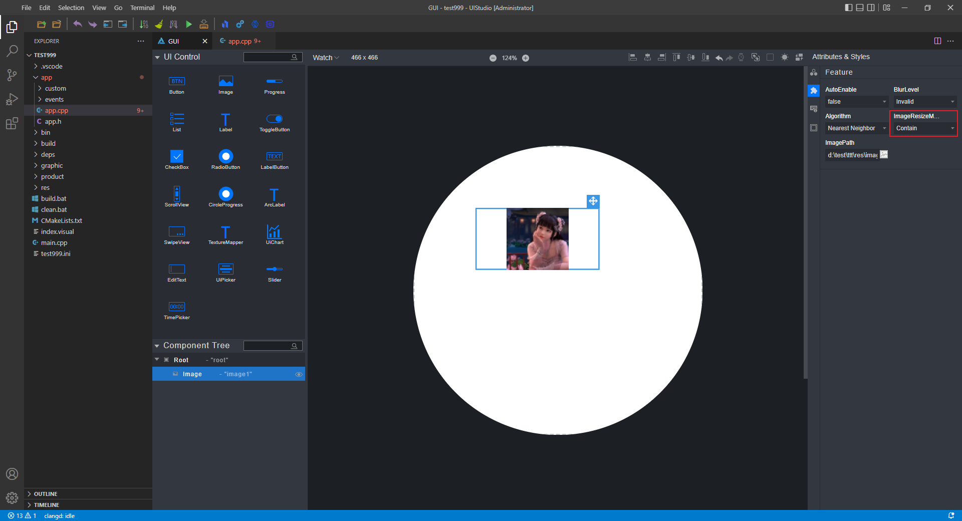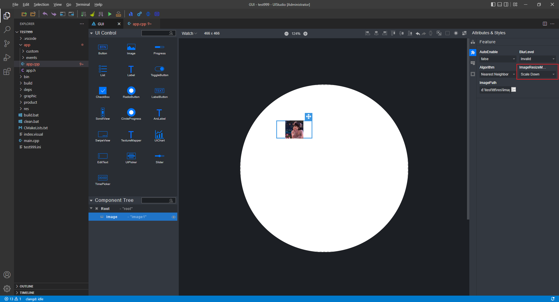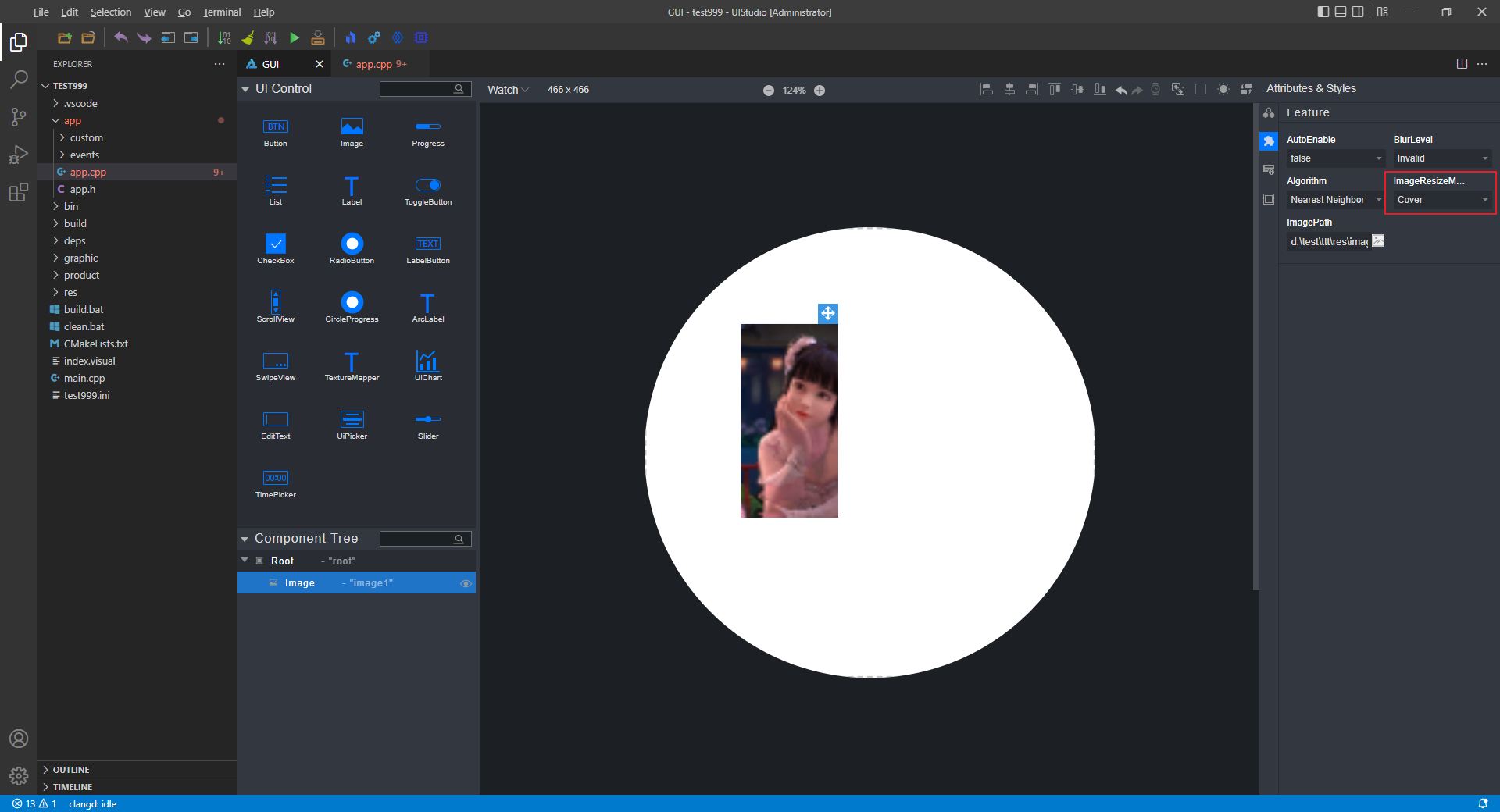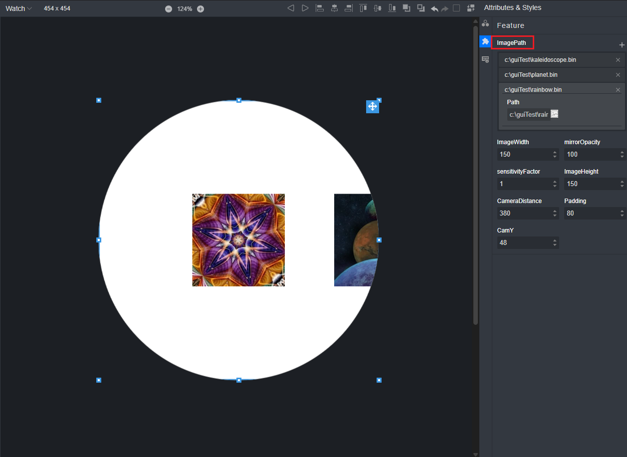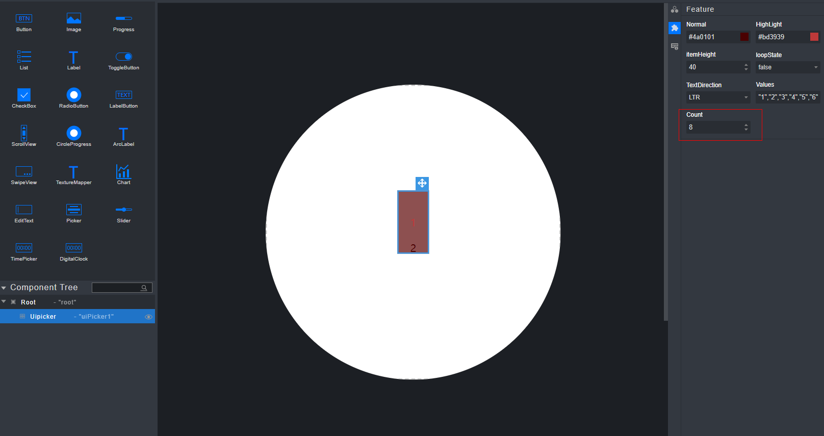 样式图标(Feature),在展开的Feature栏中修改RadioButton组件的SelectedImg属性添加选中时的图片和UnSelectedImg属性添加未选中时的图片,两张图片必须同时存在才会产生渲染效果,通过将SelectedImg和UnSelectedImg属性恢复成空(手动删除),可以实现图片的删除。