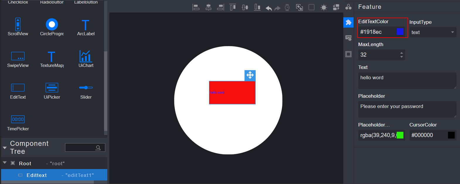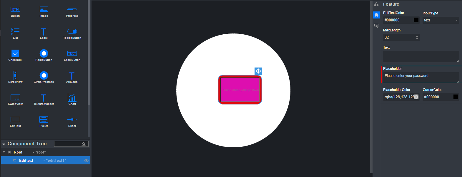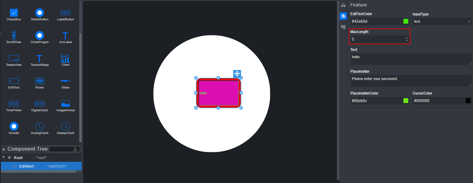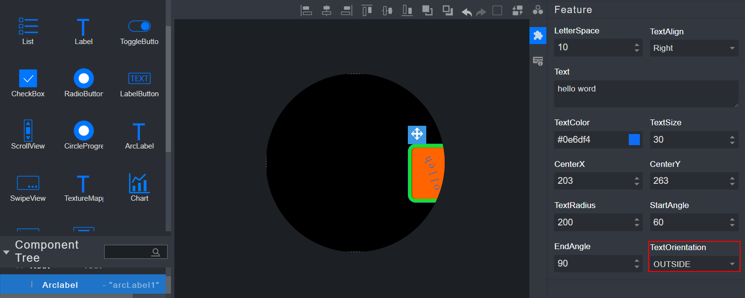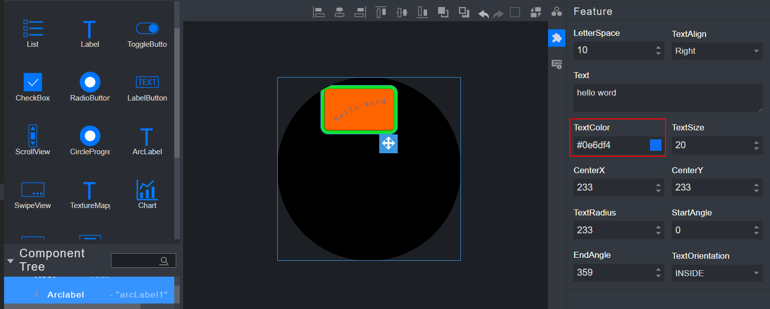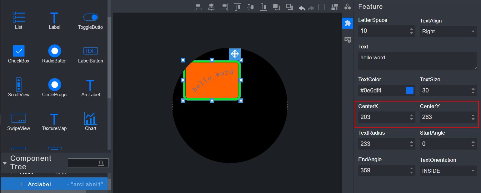 样式图标(Feature),在展开的Feature栏中修改LabelButton组件的Text属性添加文本。