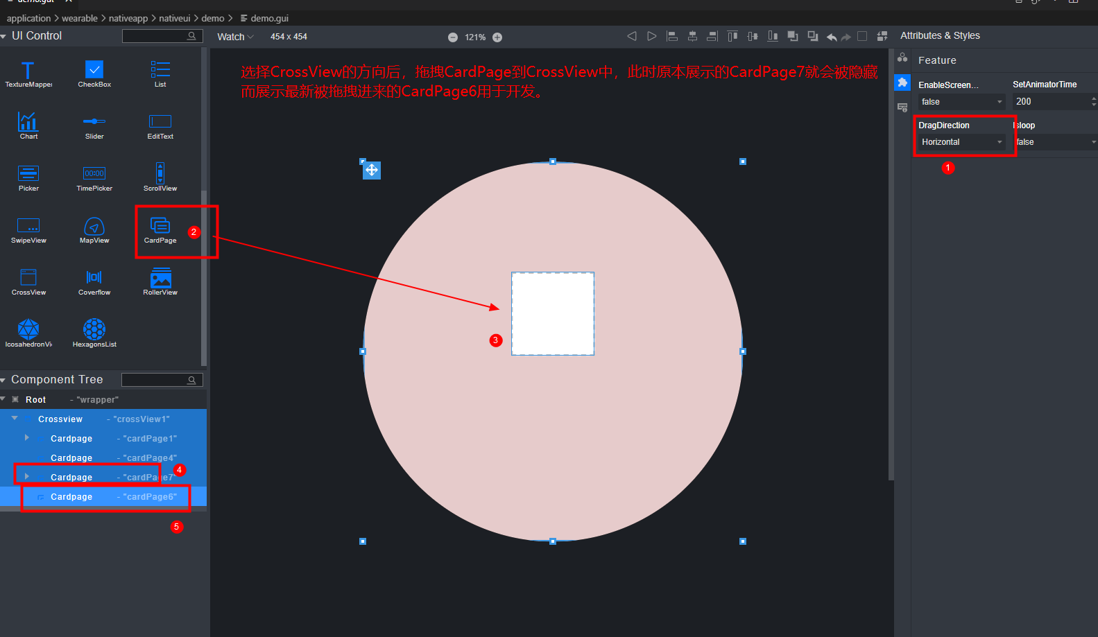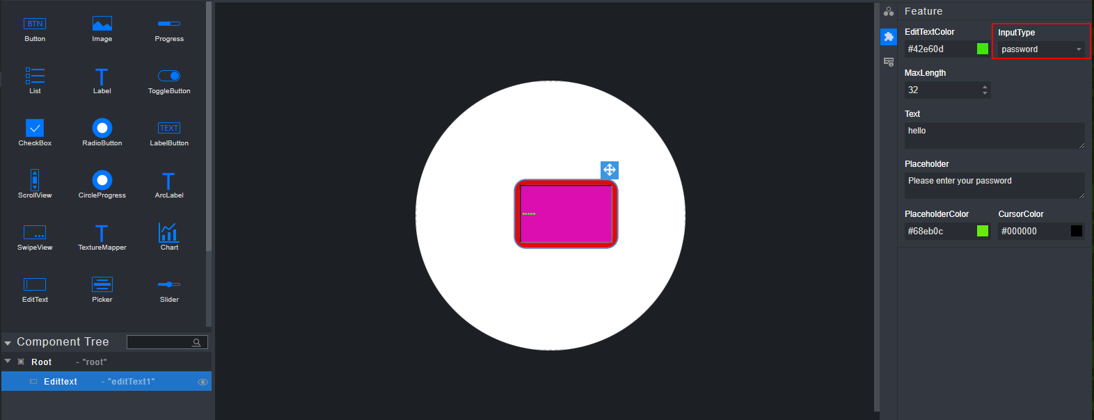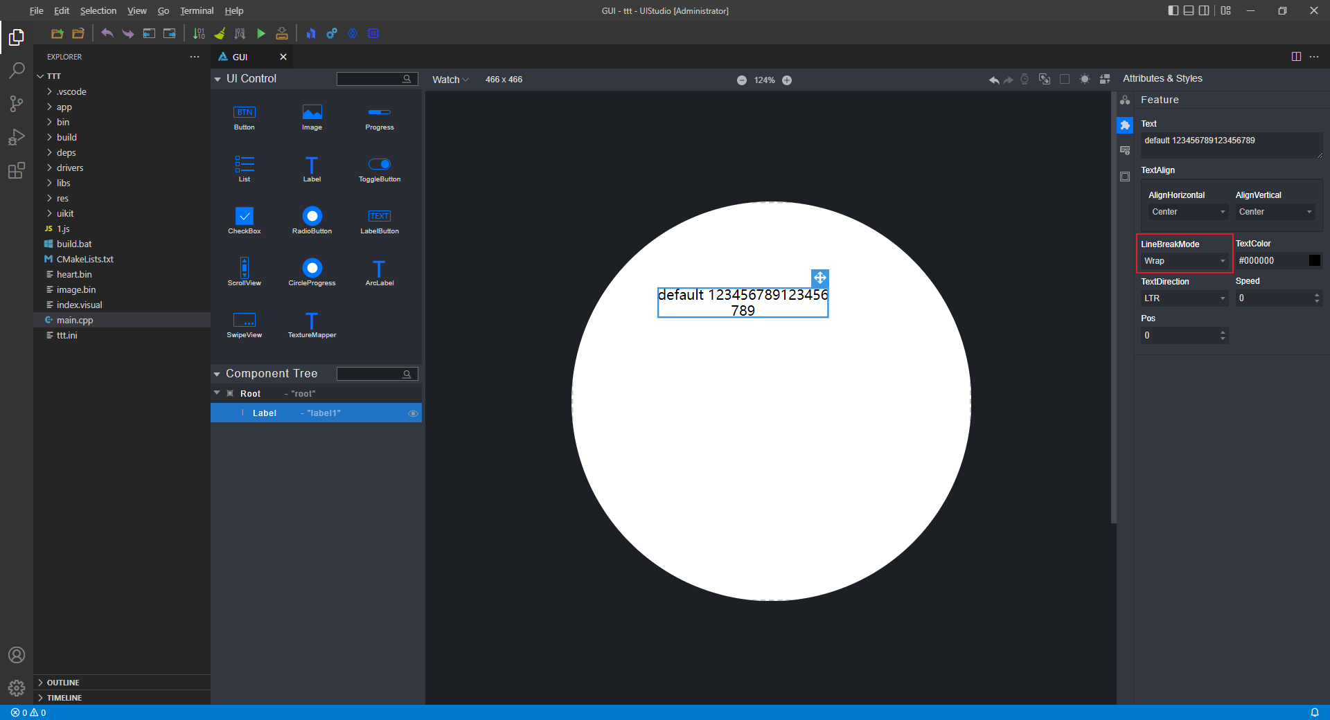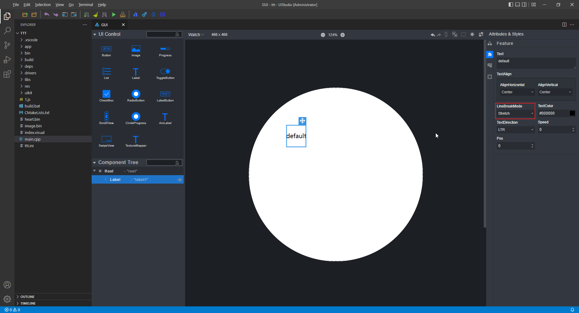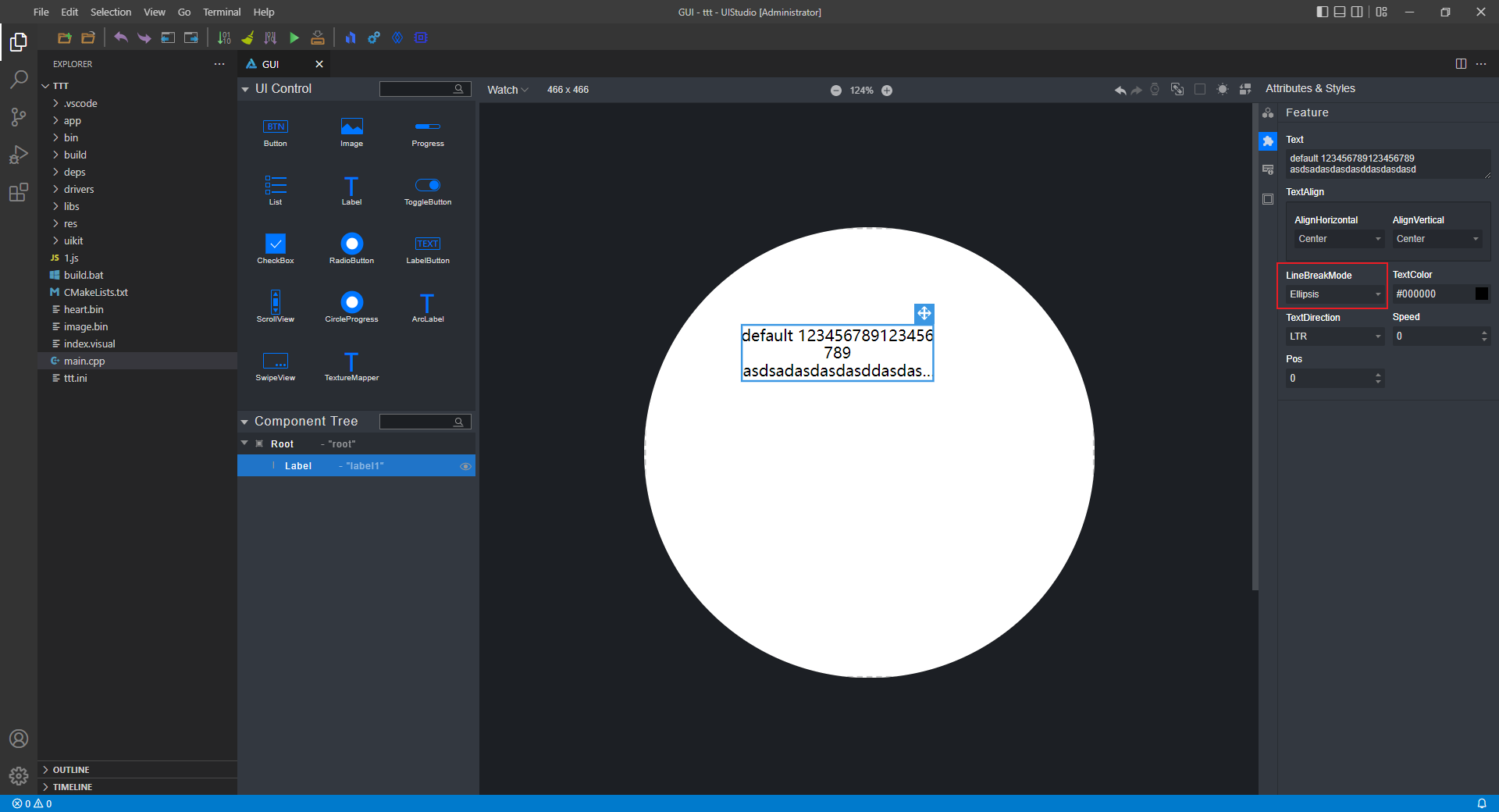 样式图标(Feature),在展开的Feature栏中修改LabelButton组件的Text属性添加文本。
