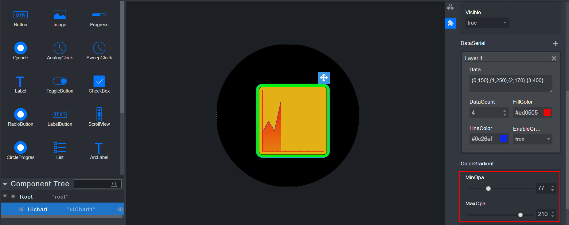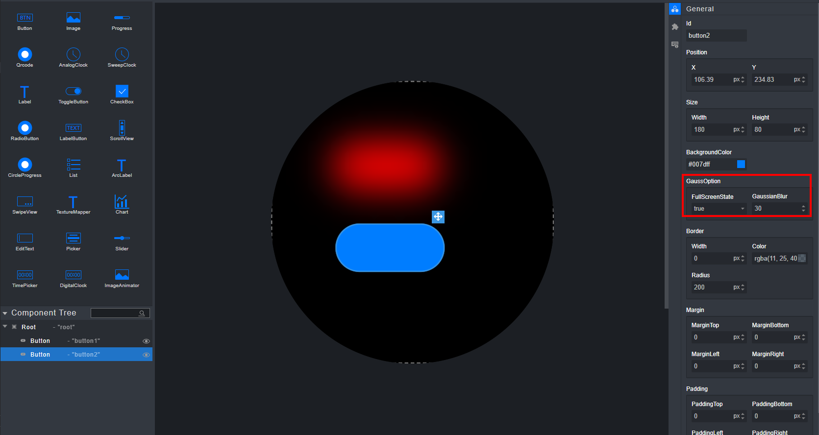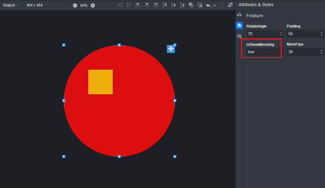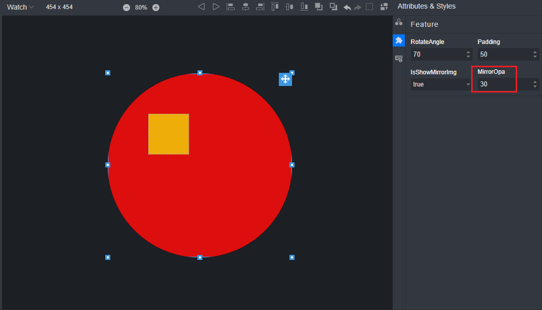 样式图标(Feature),在展开的Feature栏中修改RadioButton组件的ImageOpacity属性修改图片透明度。