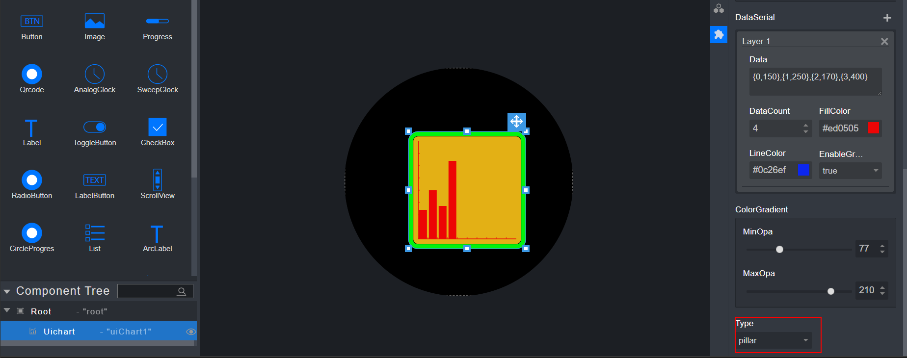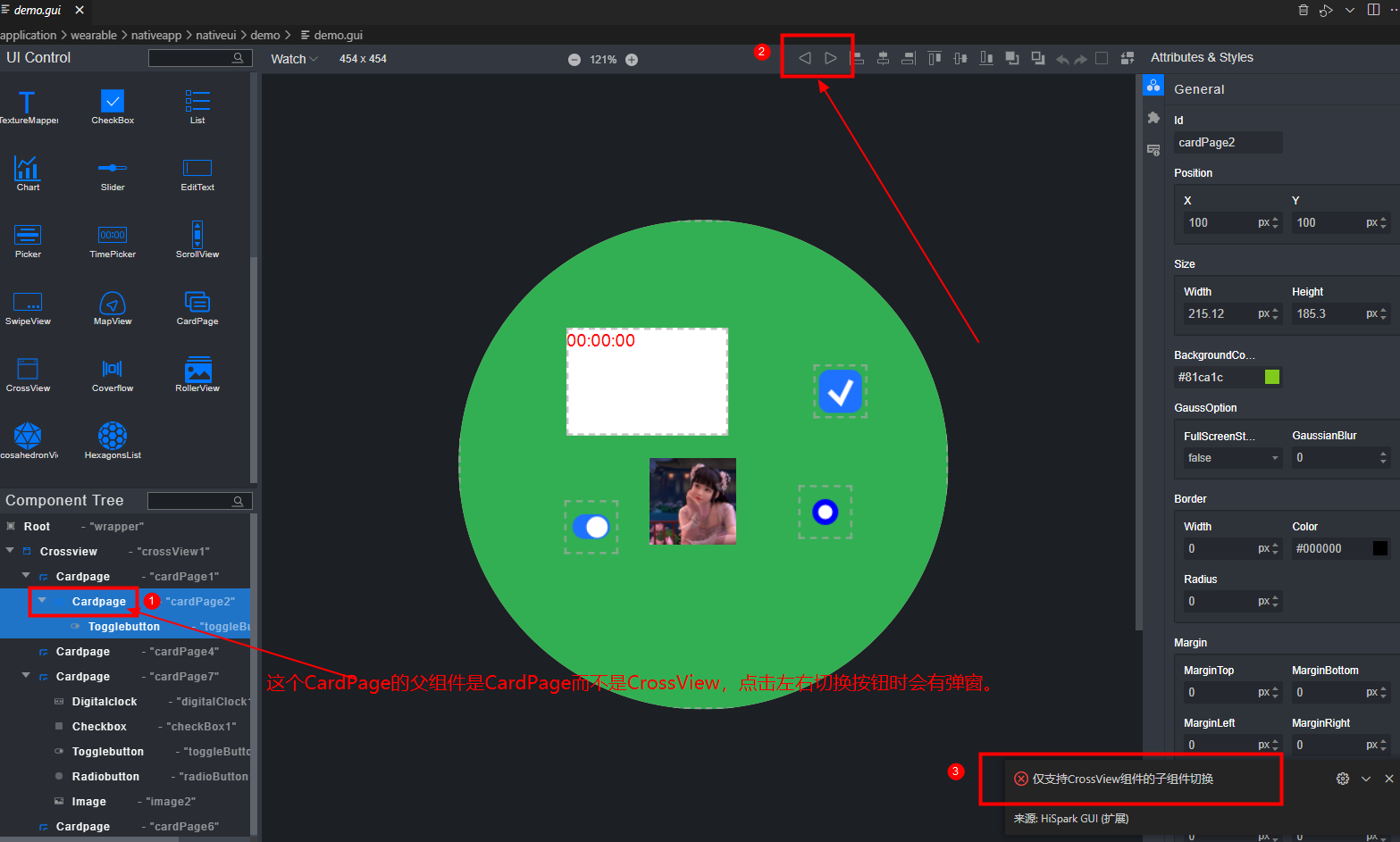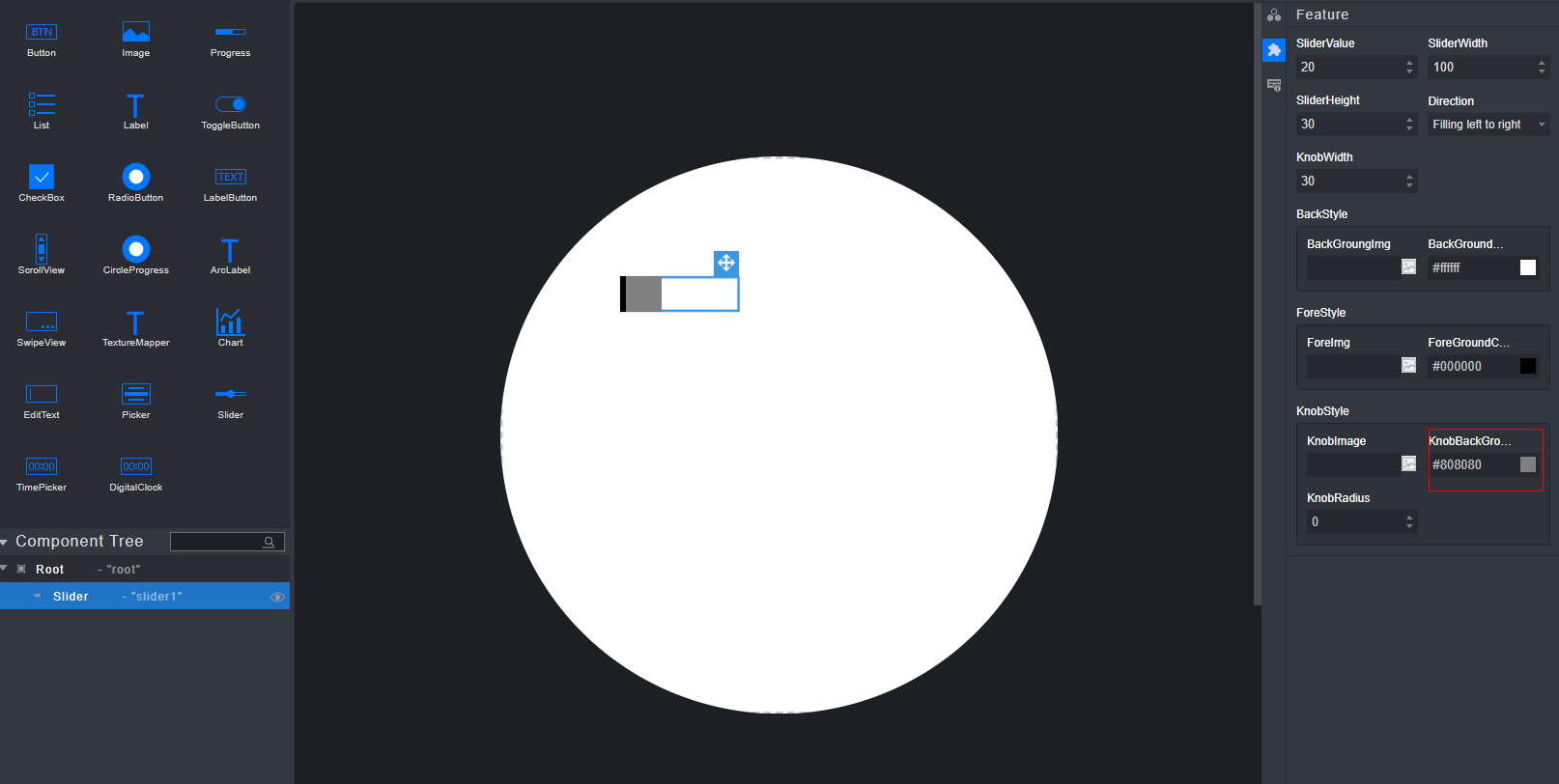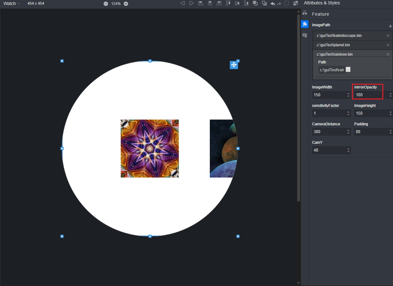 样式图标(Feature),在展开的Feature栏中修改RadioButton组件的ImageOpacity属性修改图片透明度。