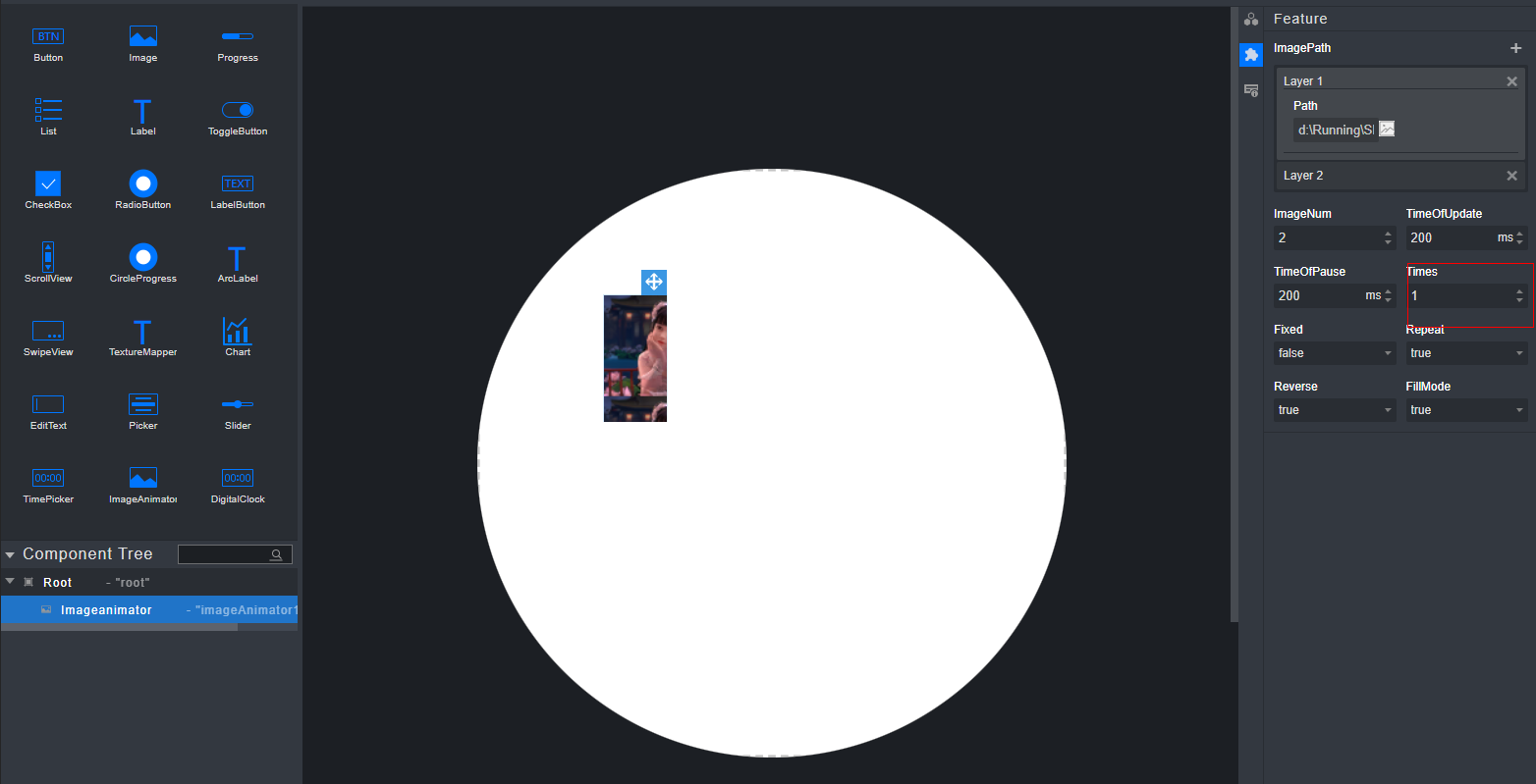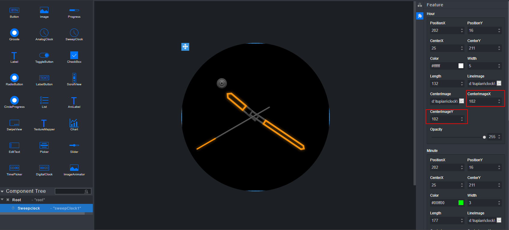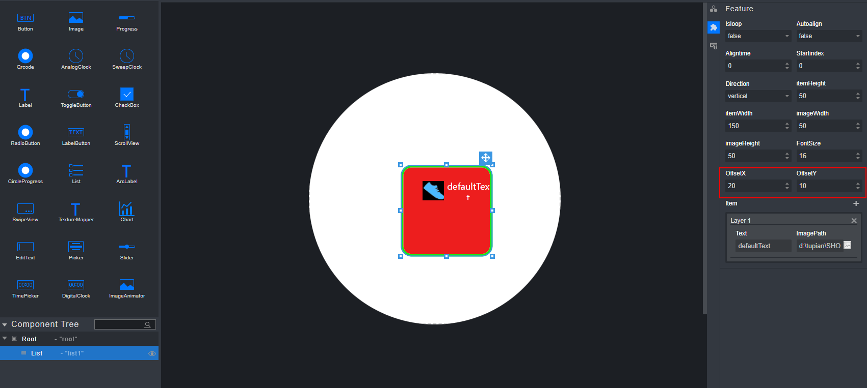 样式图标(Feature),在展开的Feature栏中修改LabelButton组件的ImageX属性和ImageY属性可以对图片的位置进行调整。