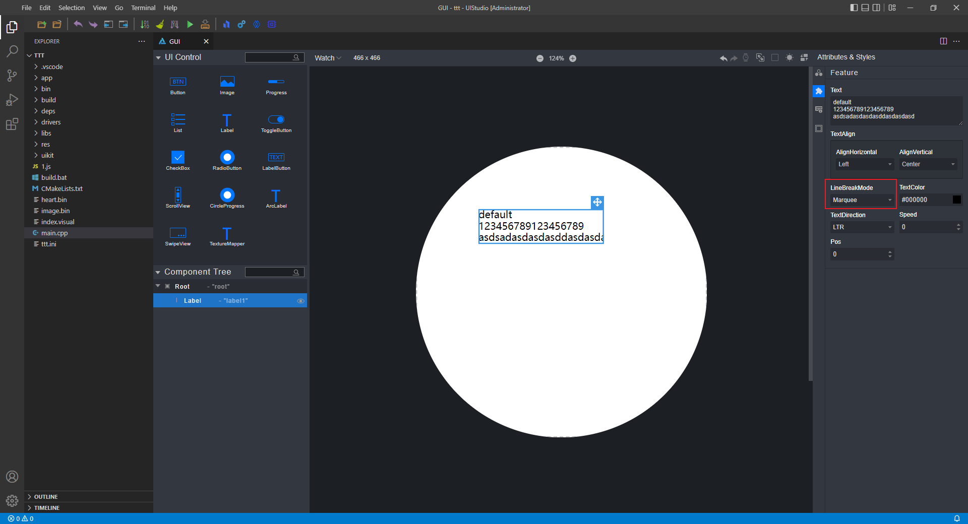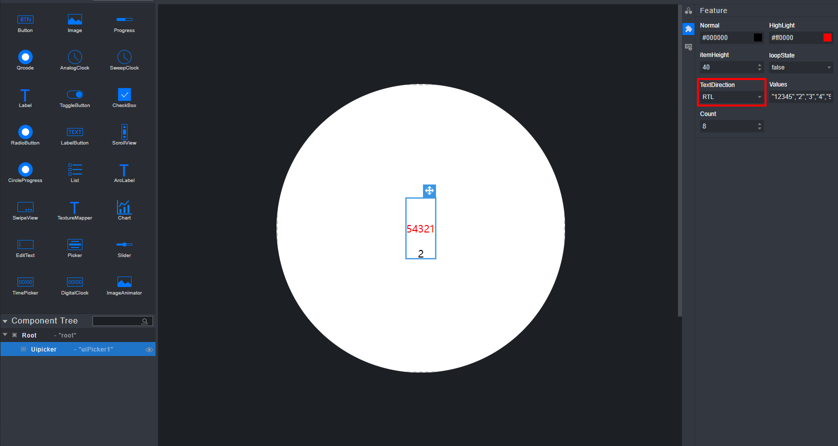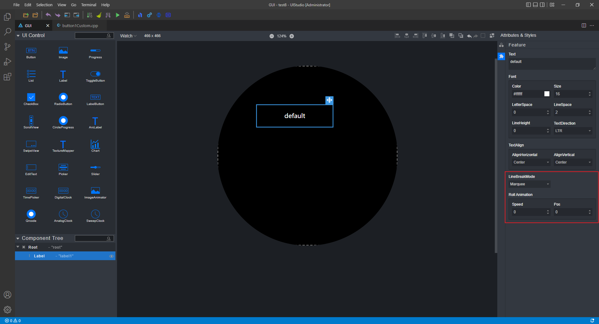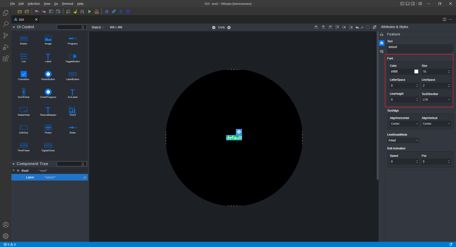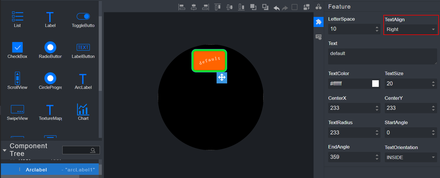 样式图标(Feature),在展开的Feature栏中修改LabelButton组件的TextAlign属性对文字的水平的对齐方式进行调整。