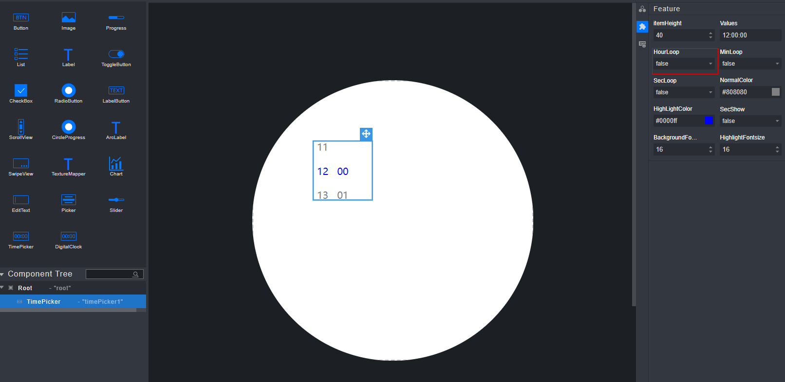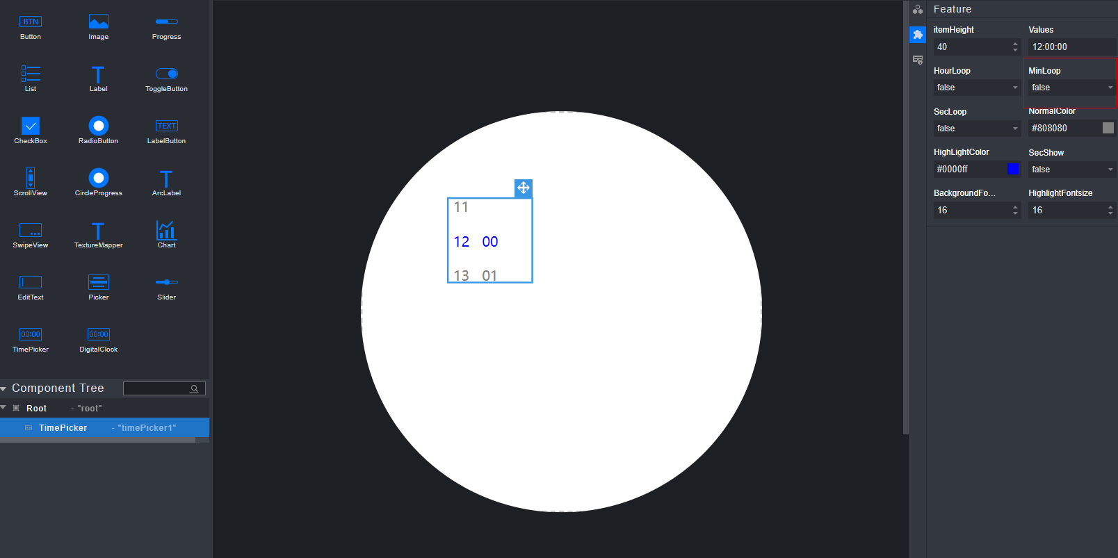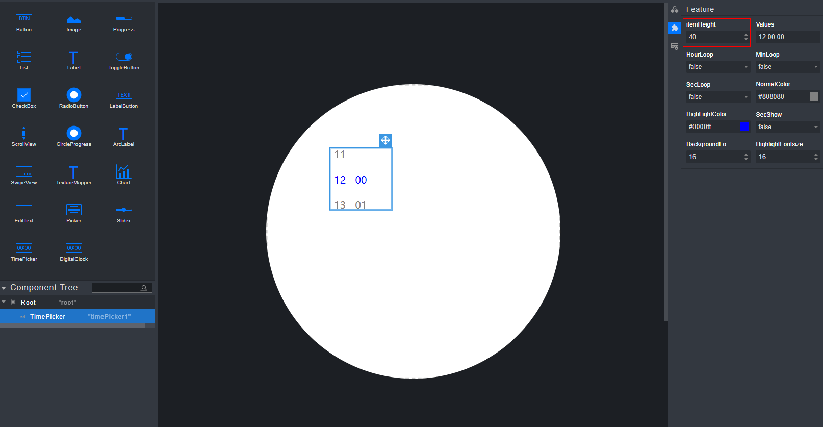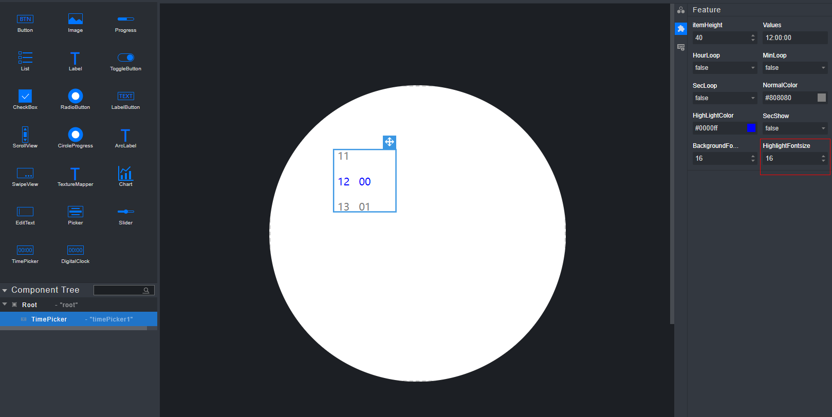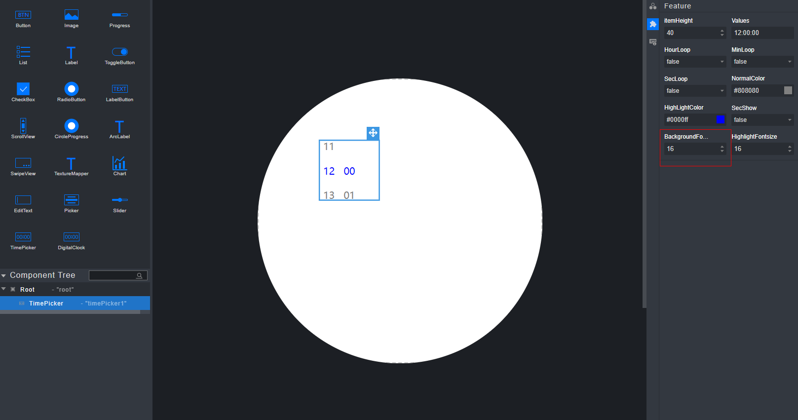 样式图标(Feature),在展开的Feature栏中设置LabelButton组件的Font属性: