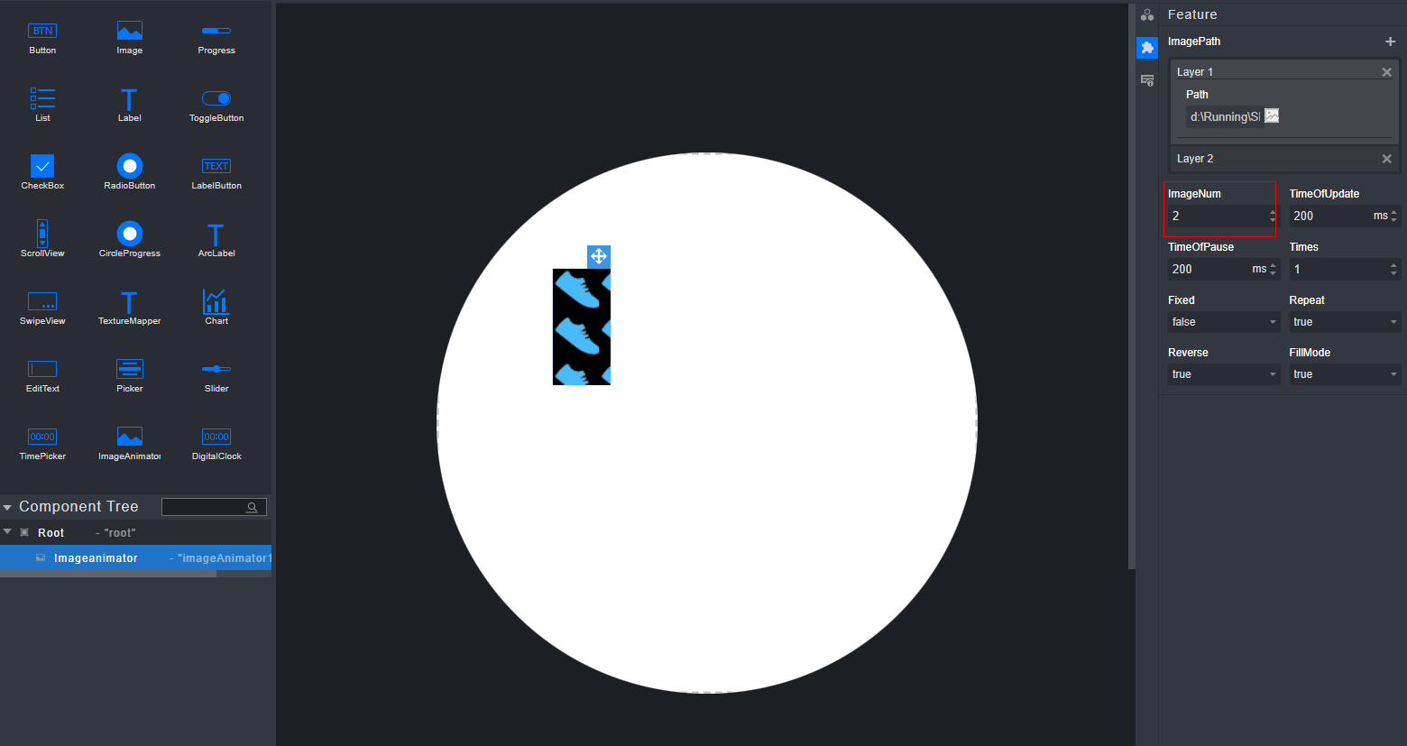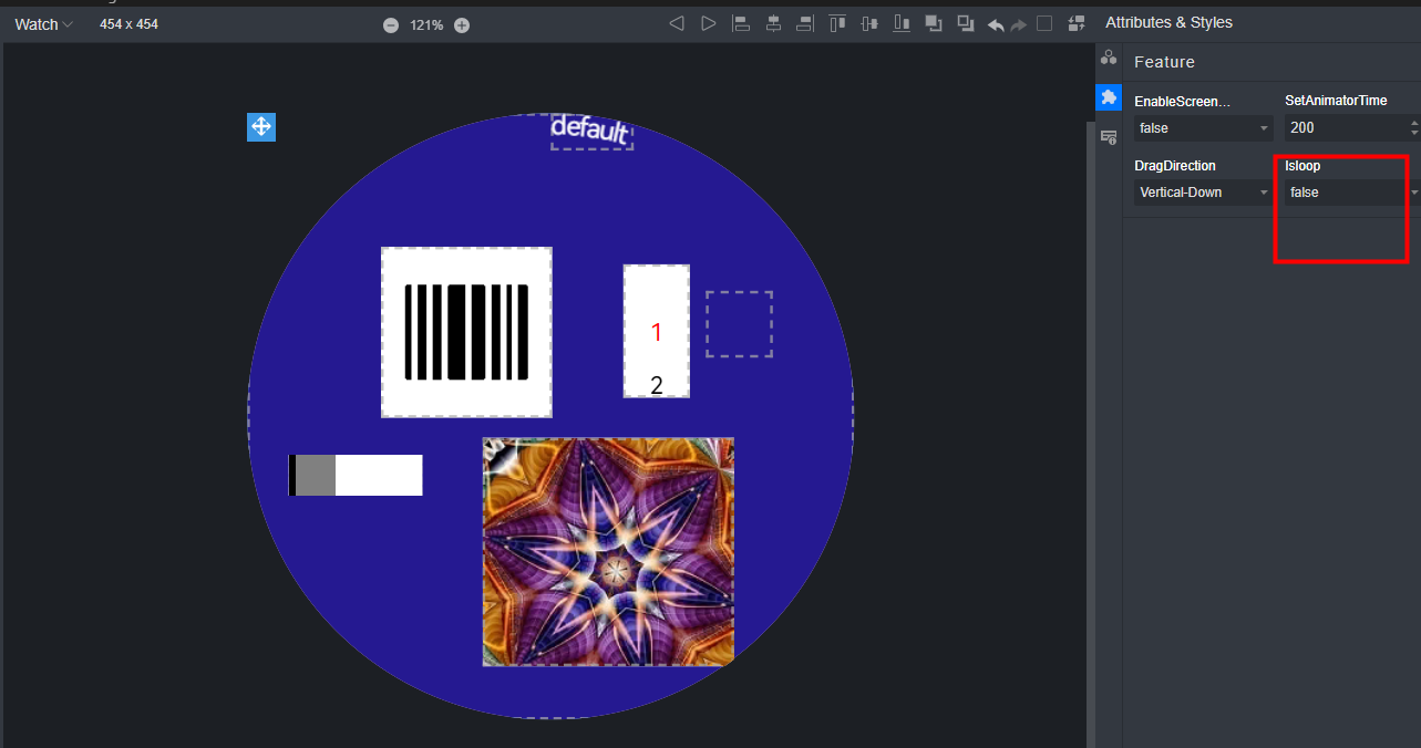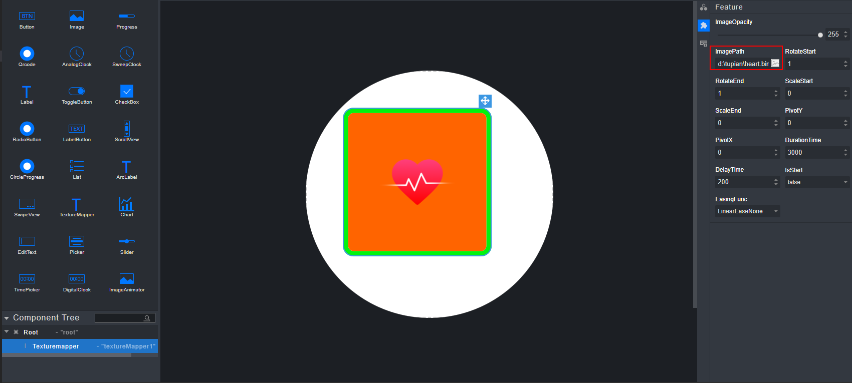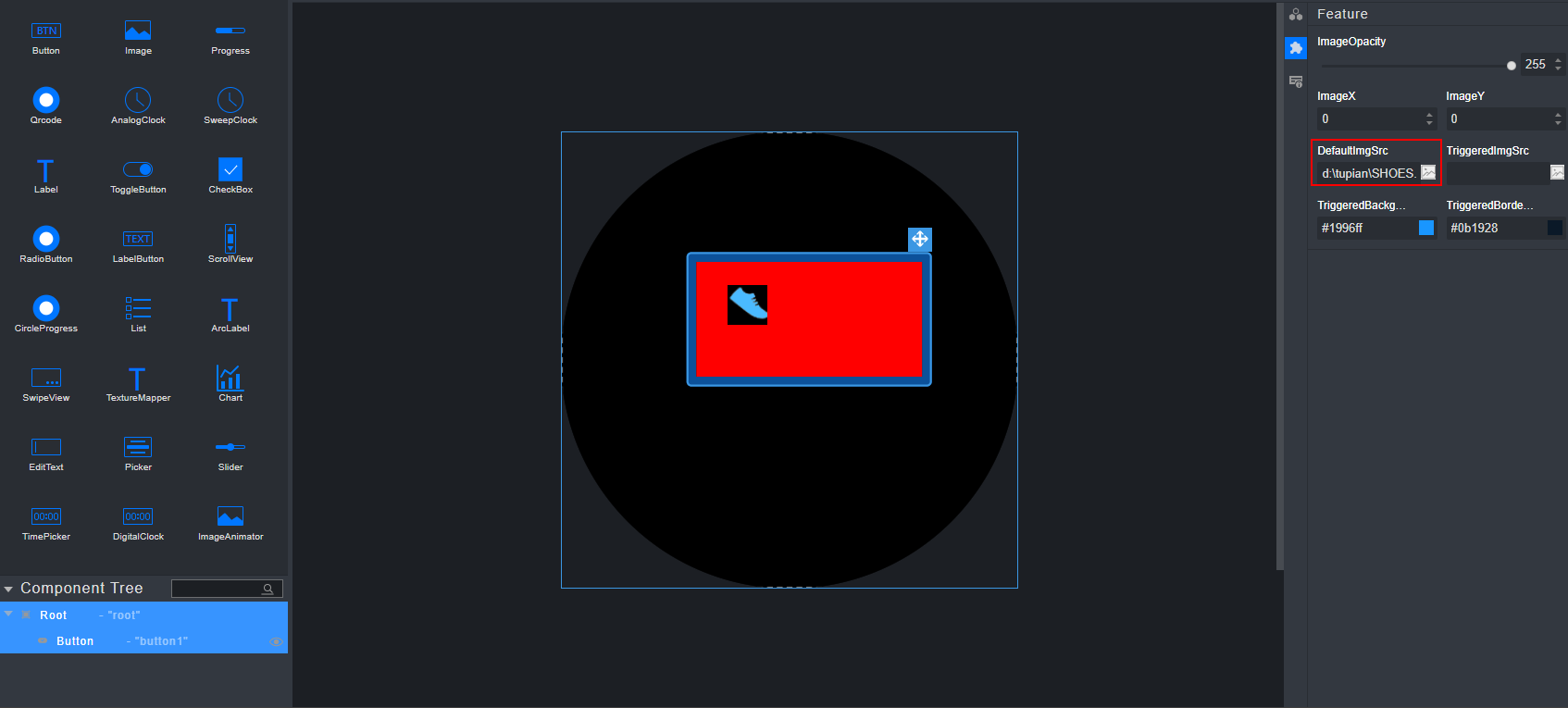 样式图标(Feature),在展开的Feature栏中修改Button组件的DefaultImgSrc属性加载图片。
