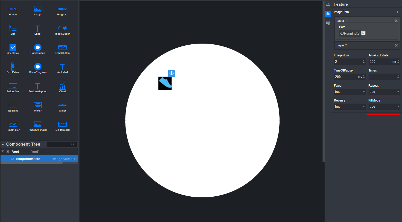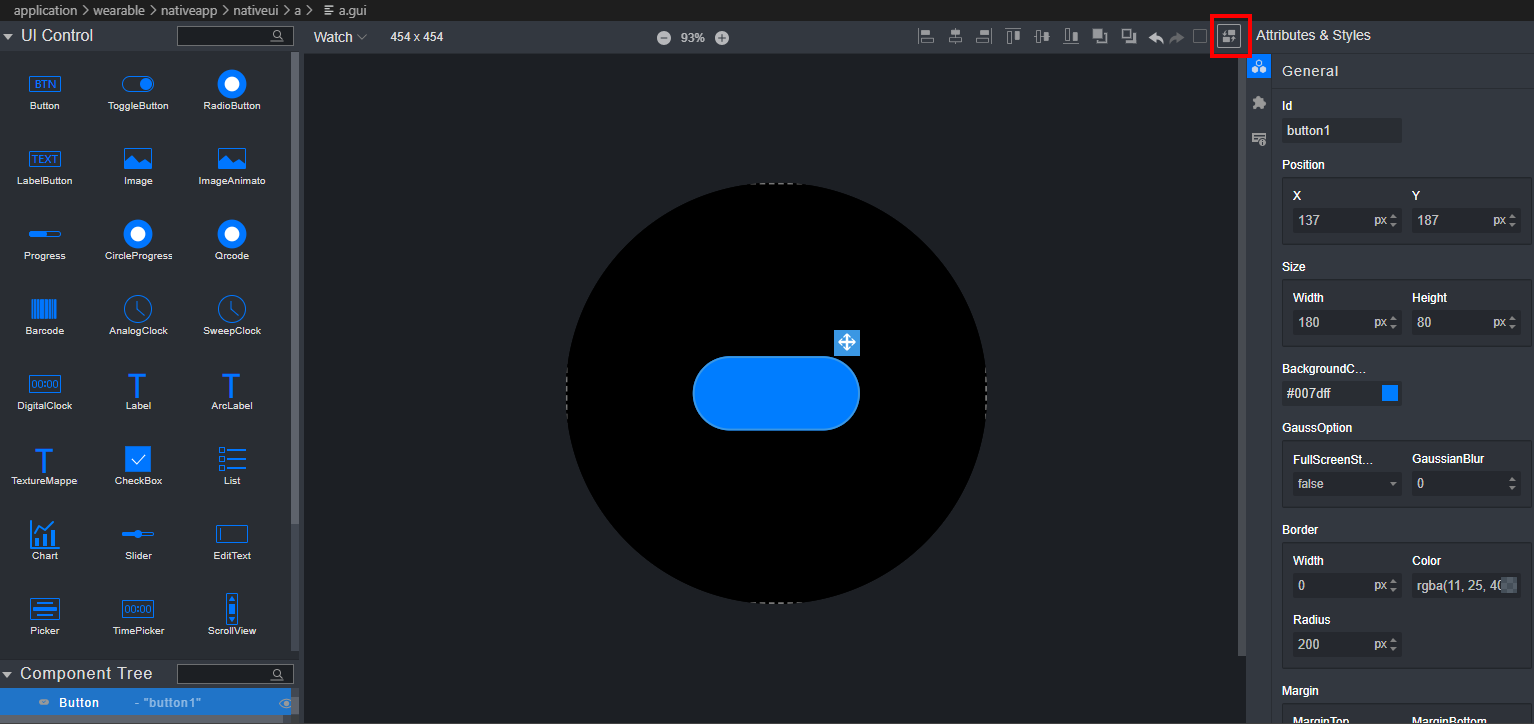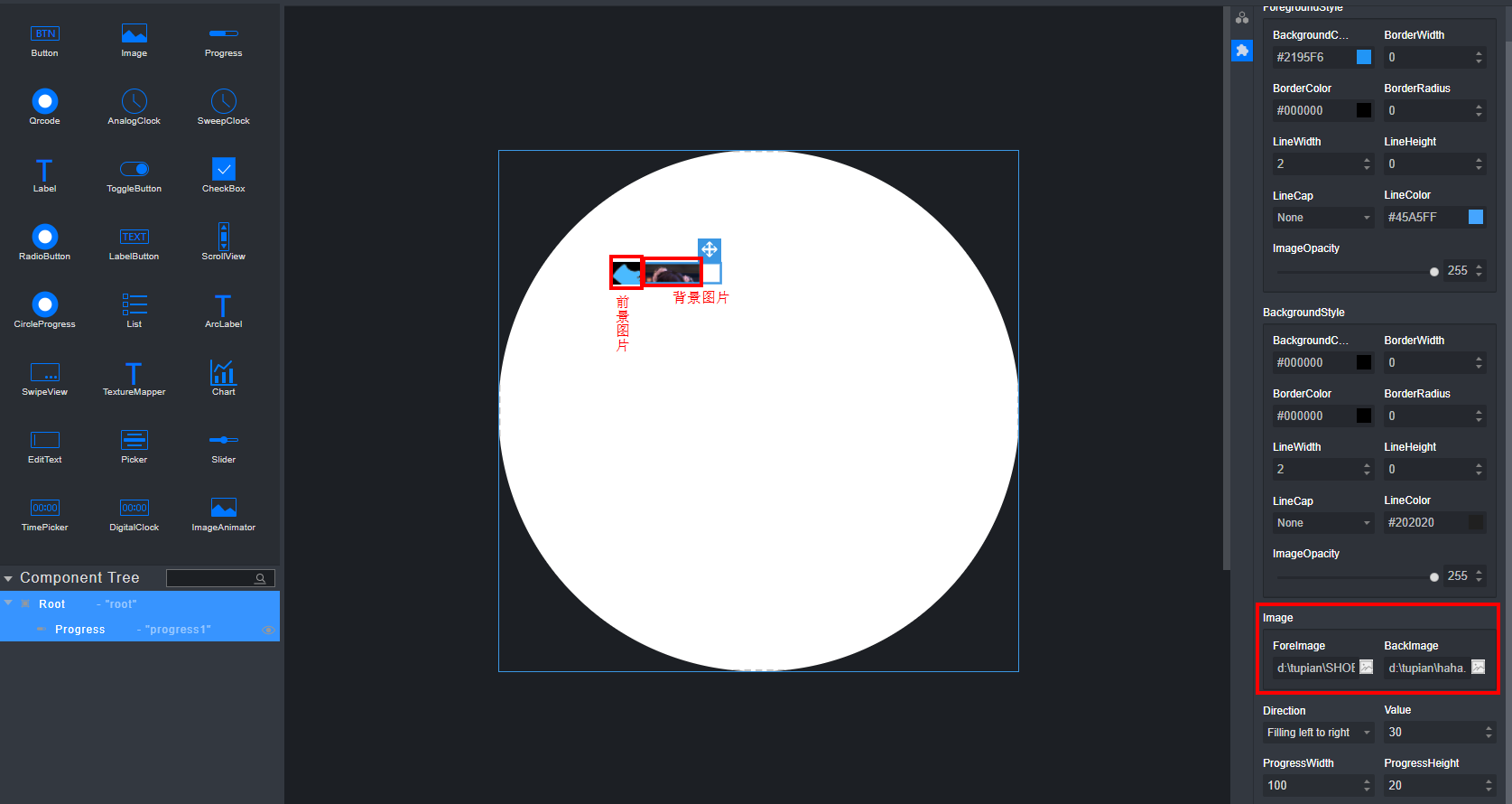 样式图标(Feature),在展开的Feature栏中修改Button组件的DefaultImgSrc属性加载图片。