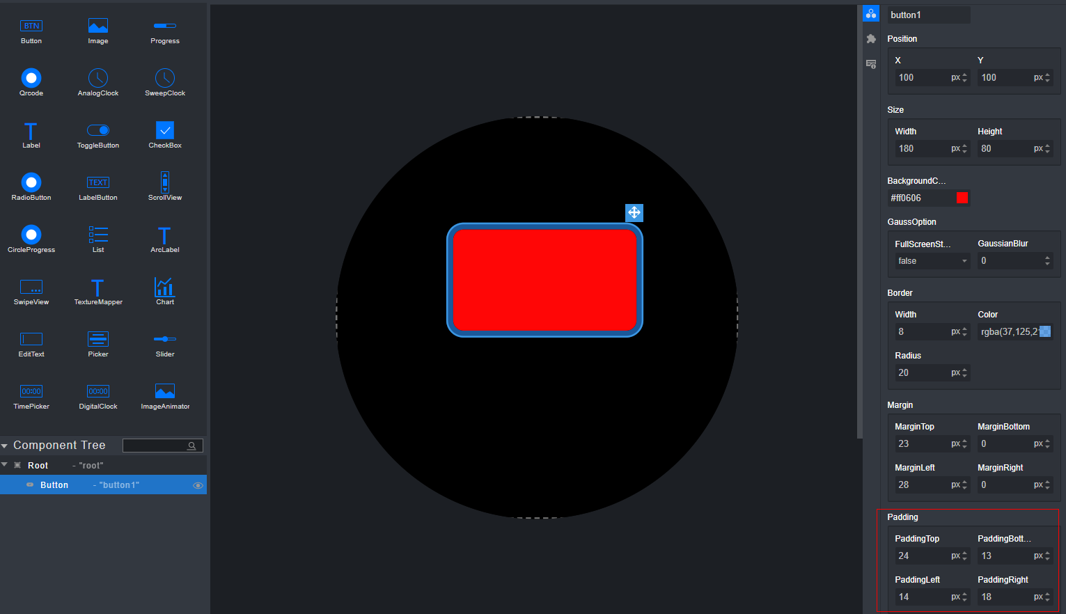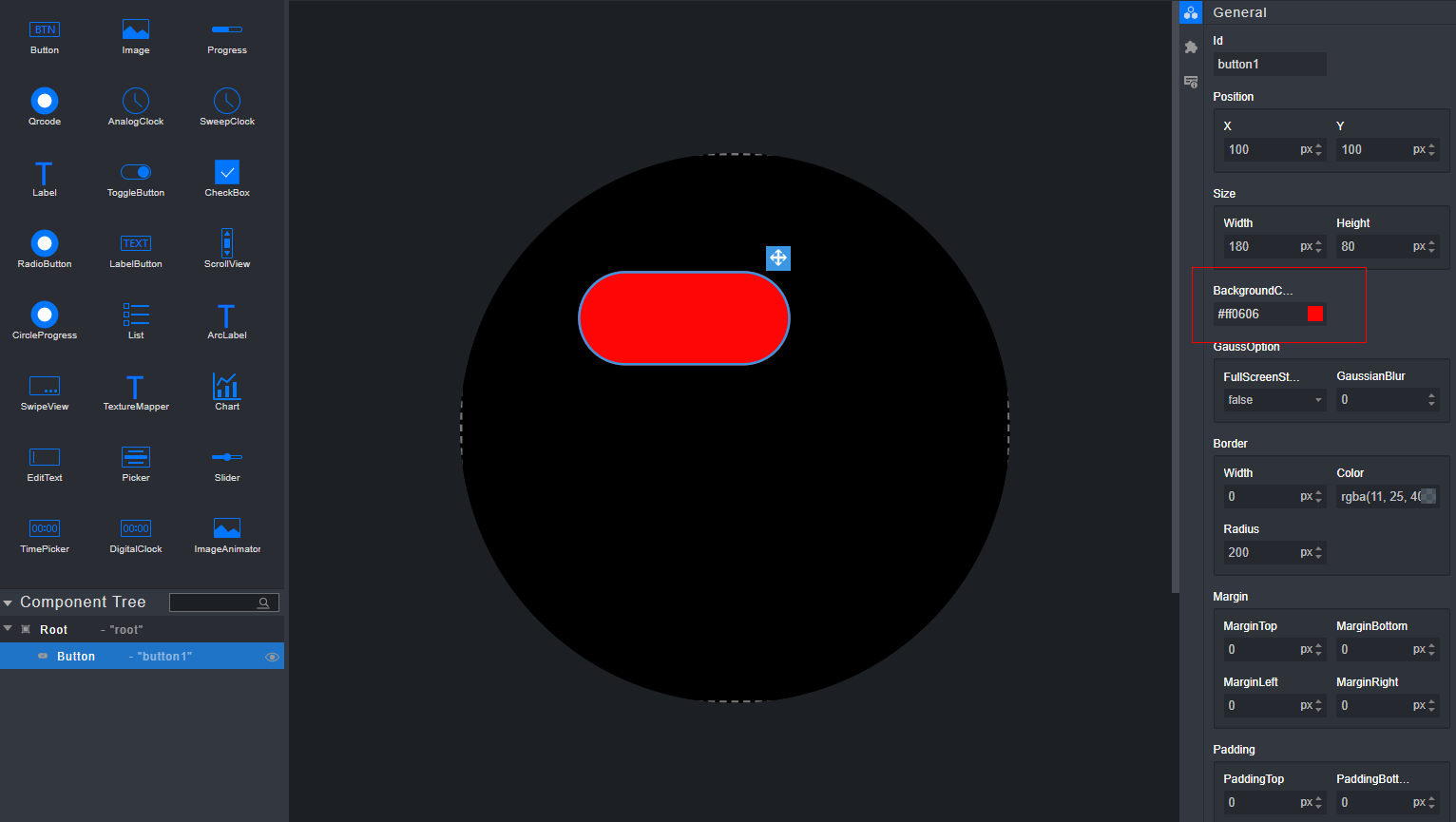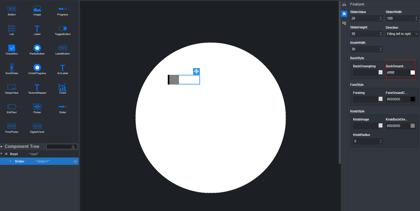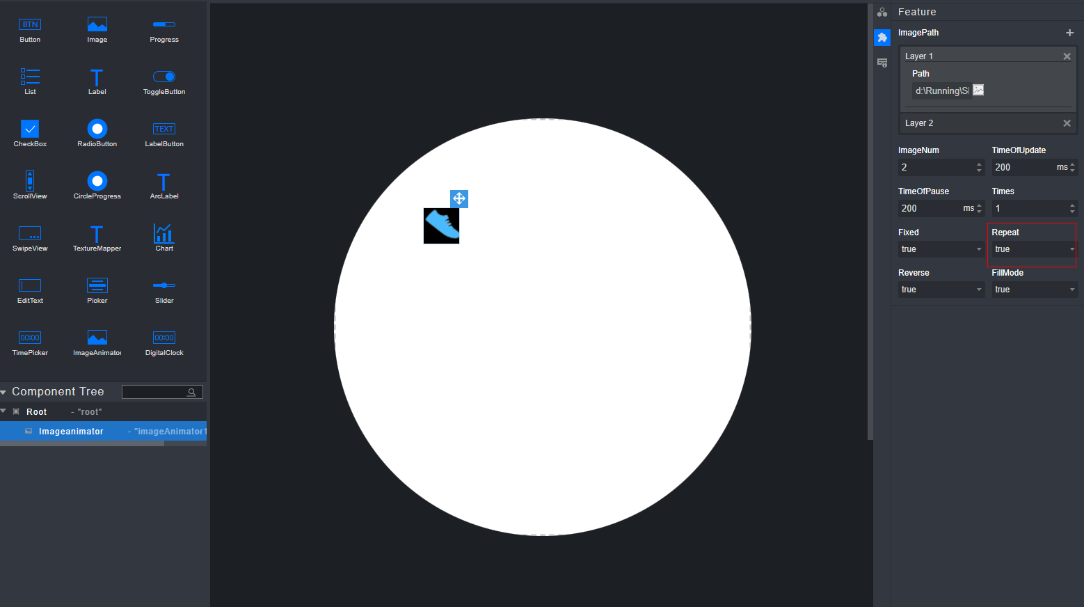 样式图标(Feature),在展开的Feature栏中修改Button组件的DefaultImgSrc属性加载图片。
