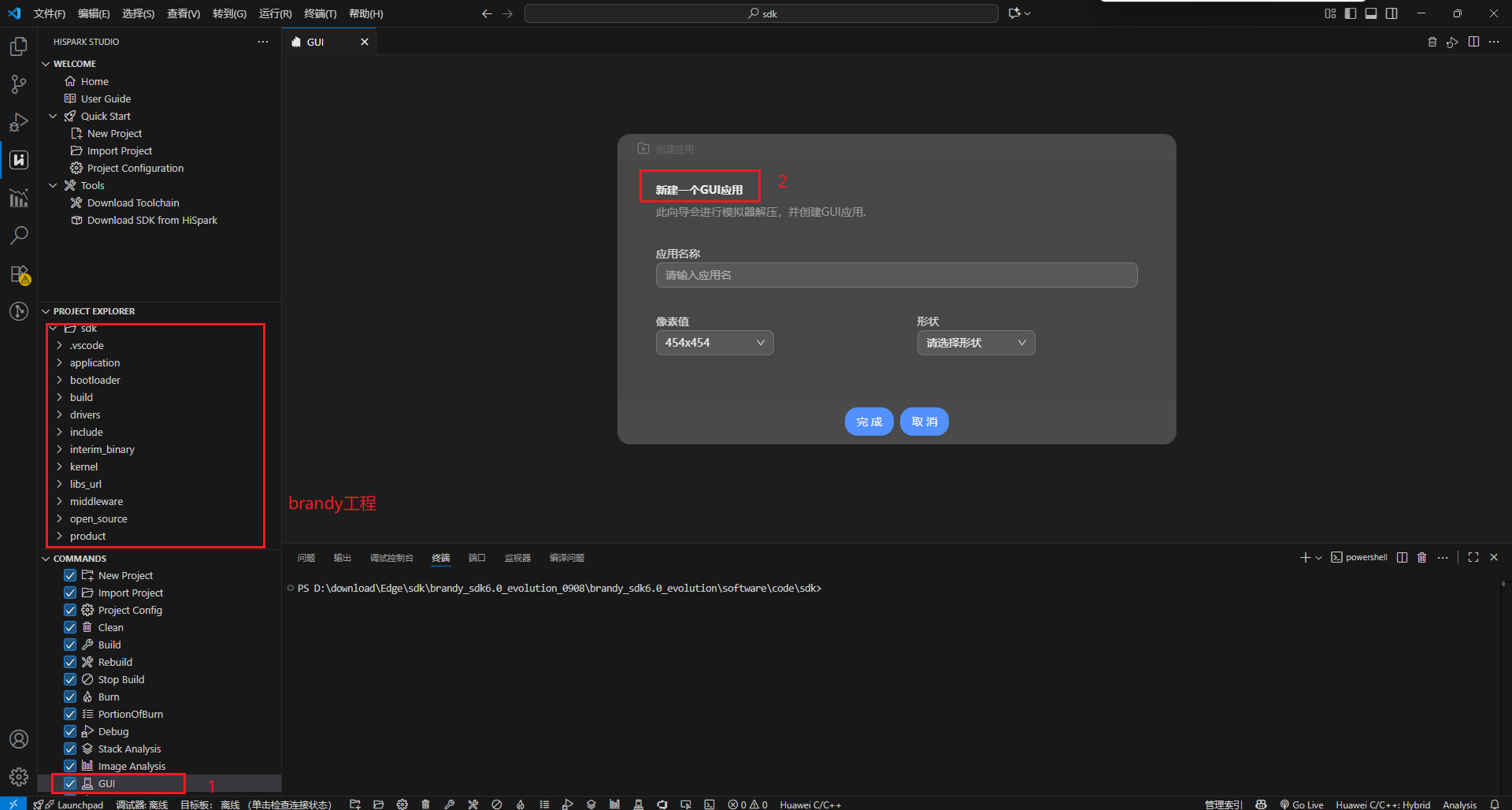 HiSpark Studio for VS Code插件主要分为以下6个功能区域,如图1所示。