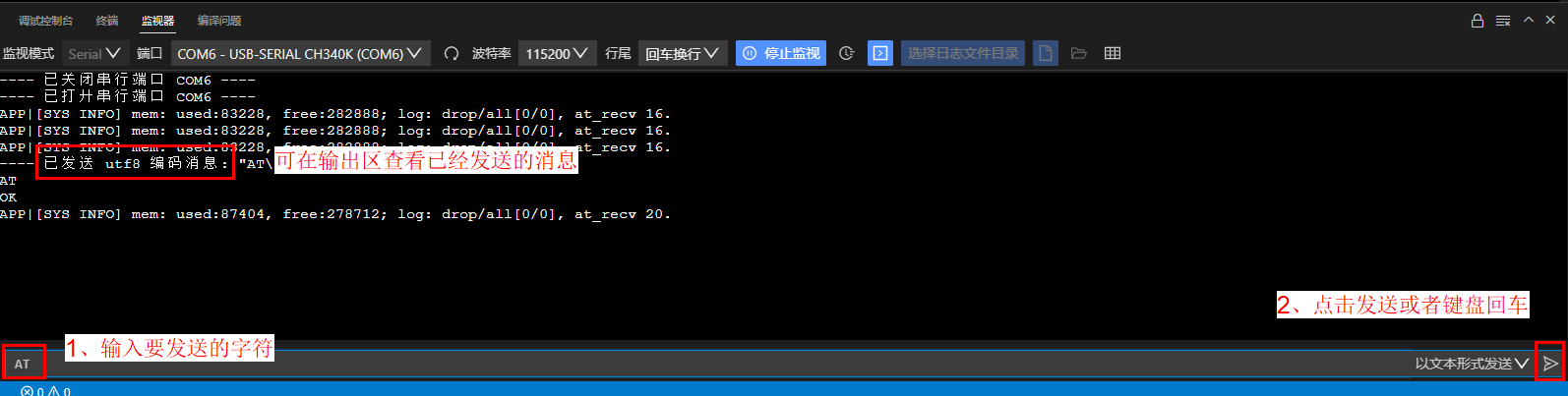 ⑥状态栏:提供常用功能按钮,包括新建工程、导入工程、工程配置、清除、编译、烧录等功能并显示当前文件的编码格式、行数、列数等信息。