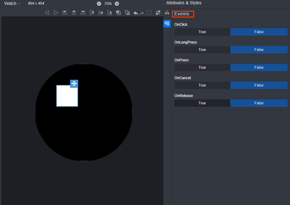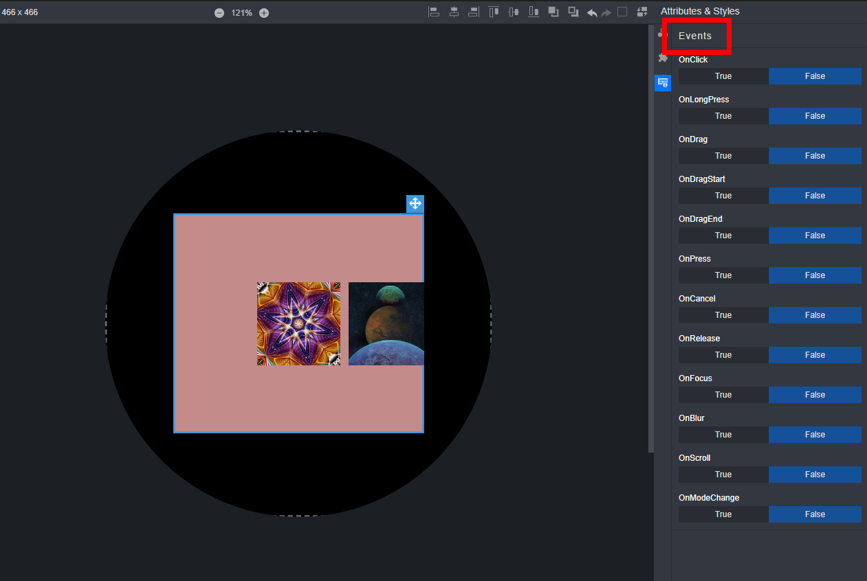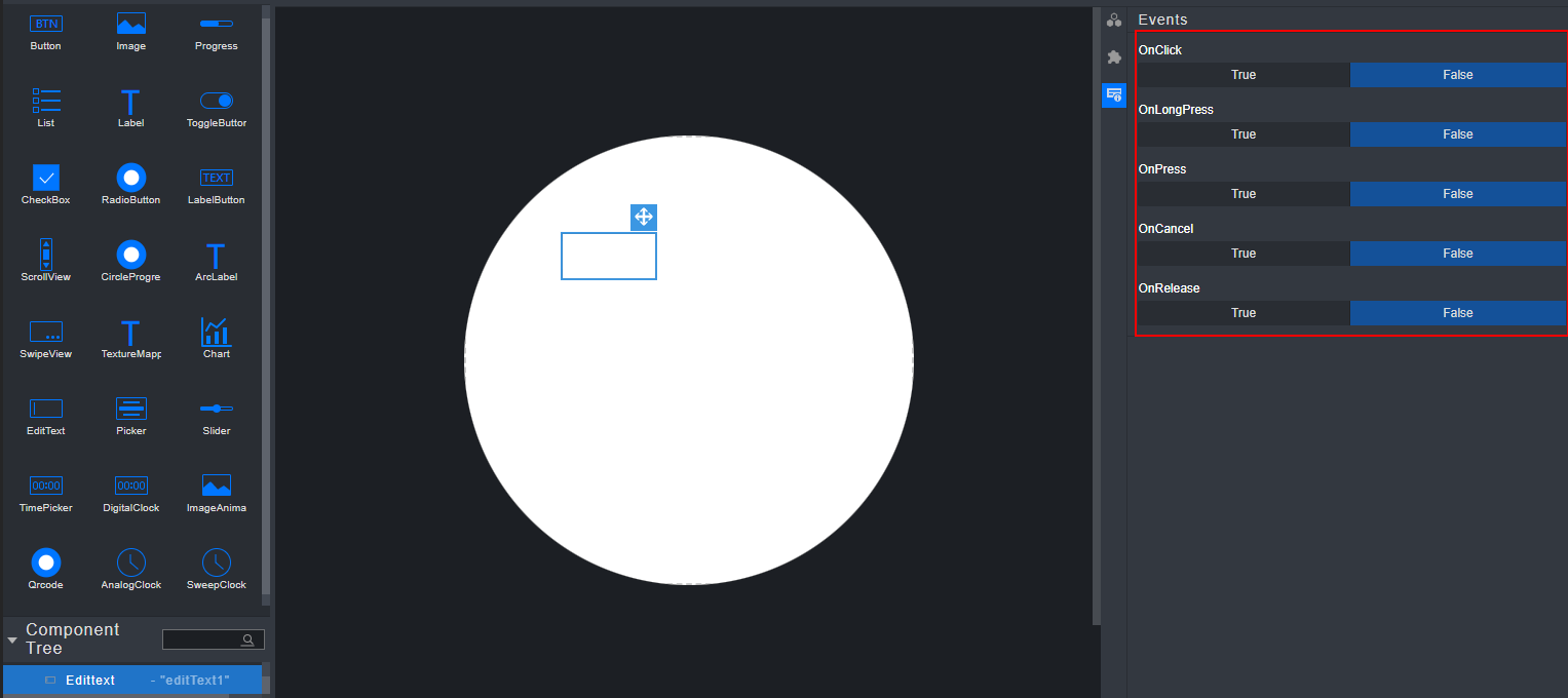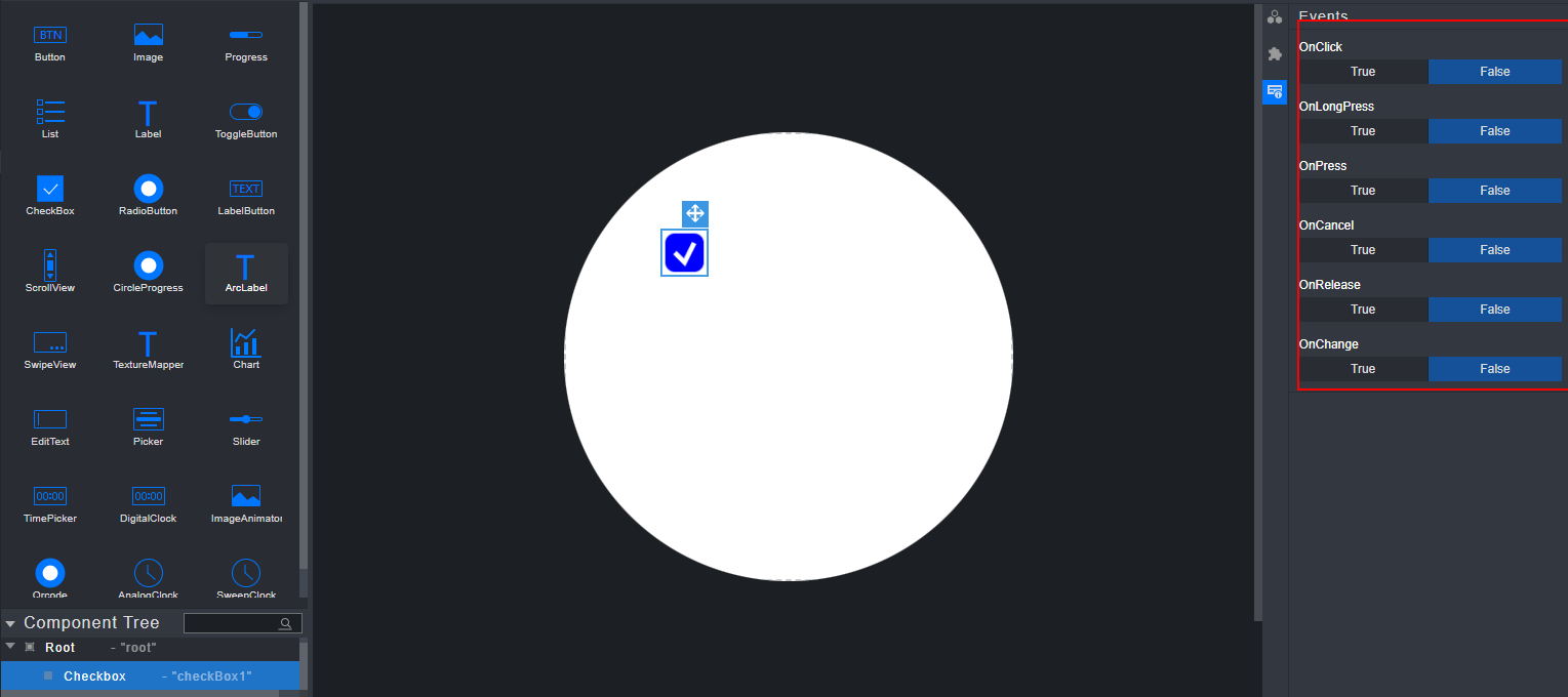 样式图标(Events),在展开的Events栏中配置回调事件。