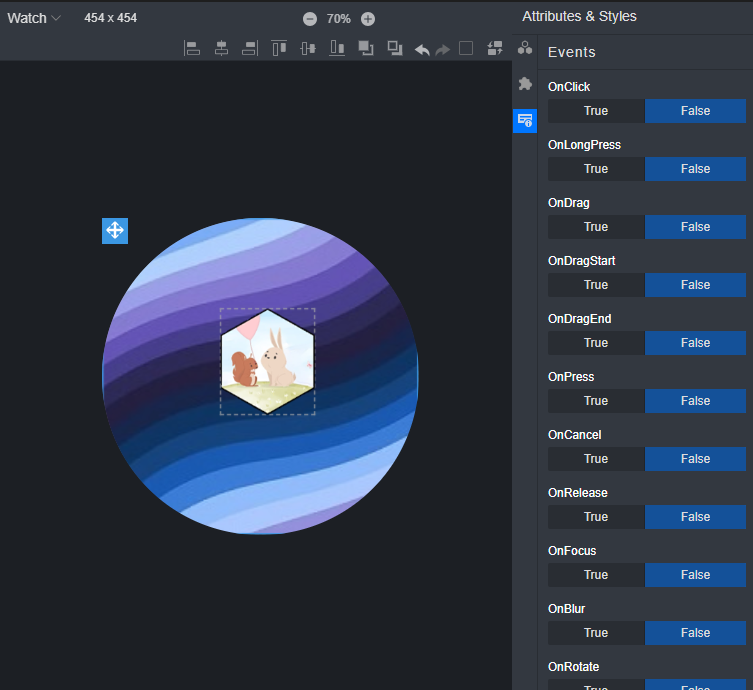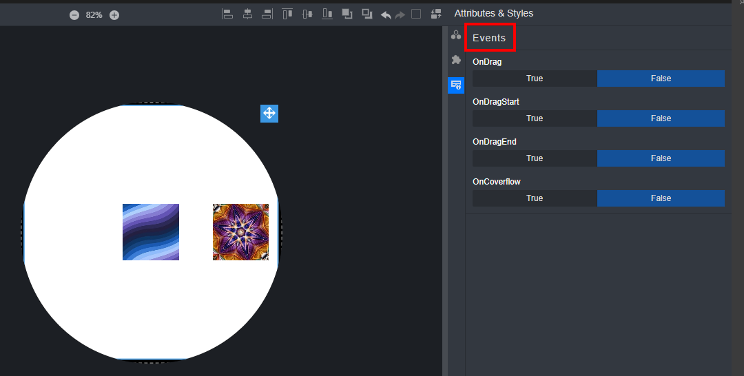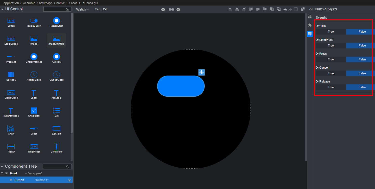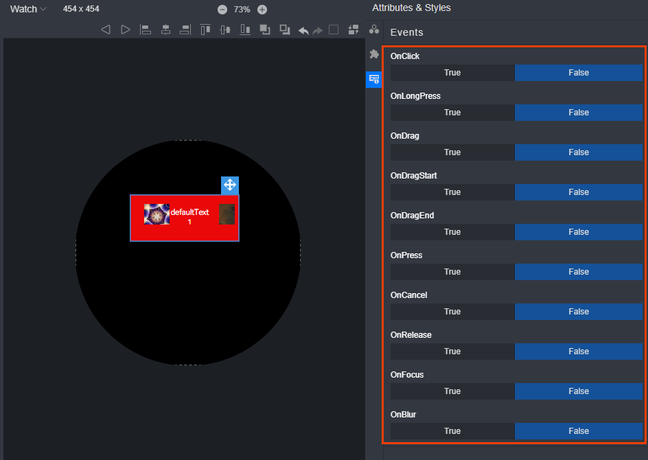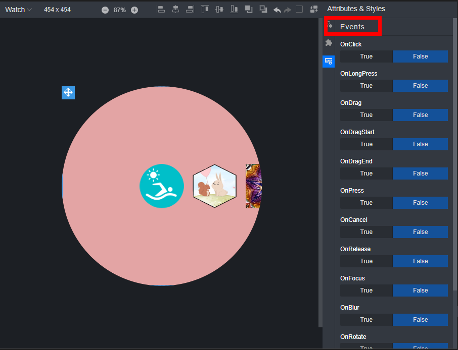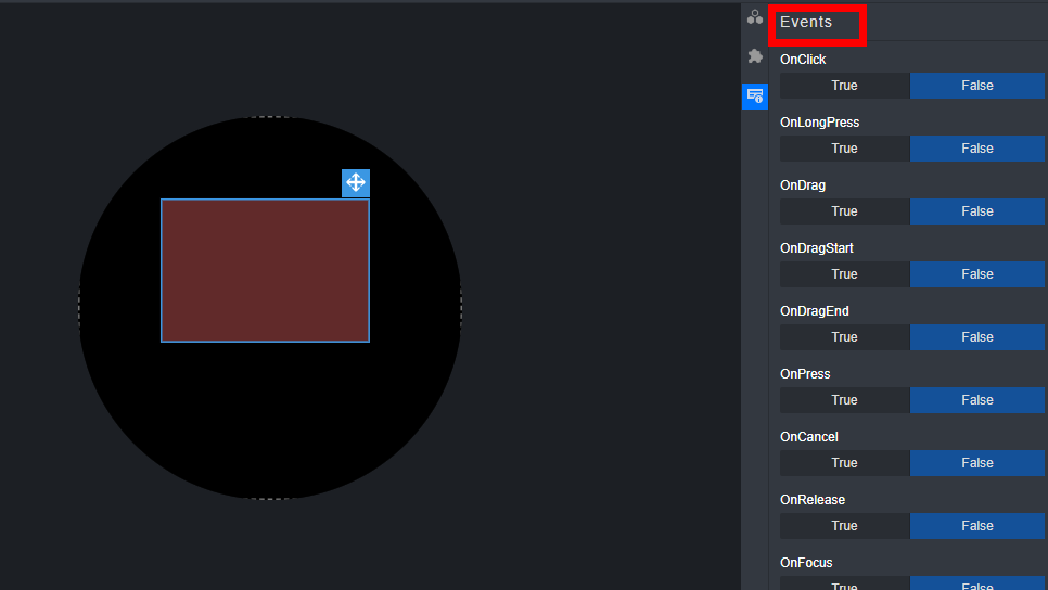 样式图标(Events),在展开的Events栏中配置回调事件。