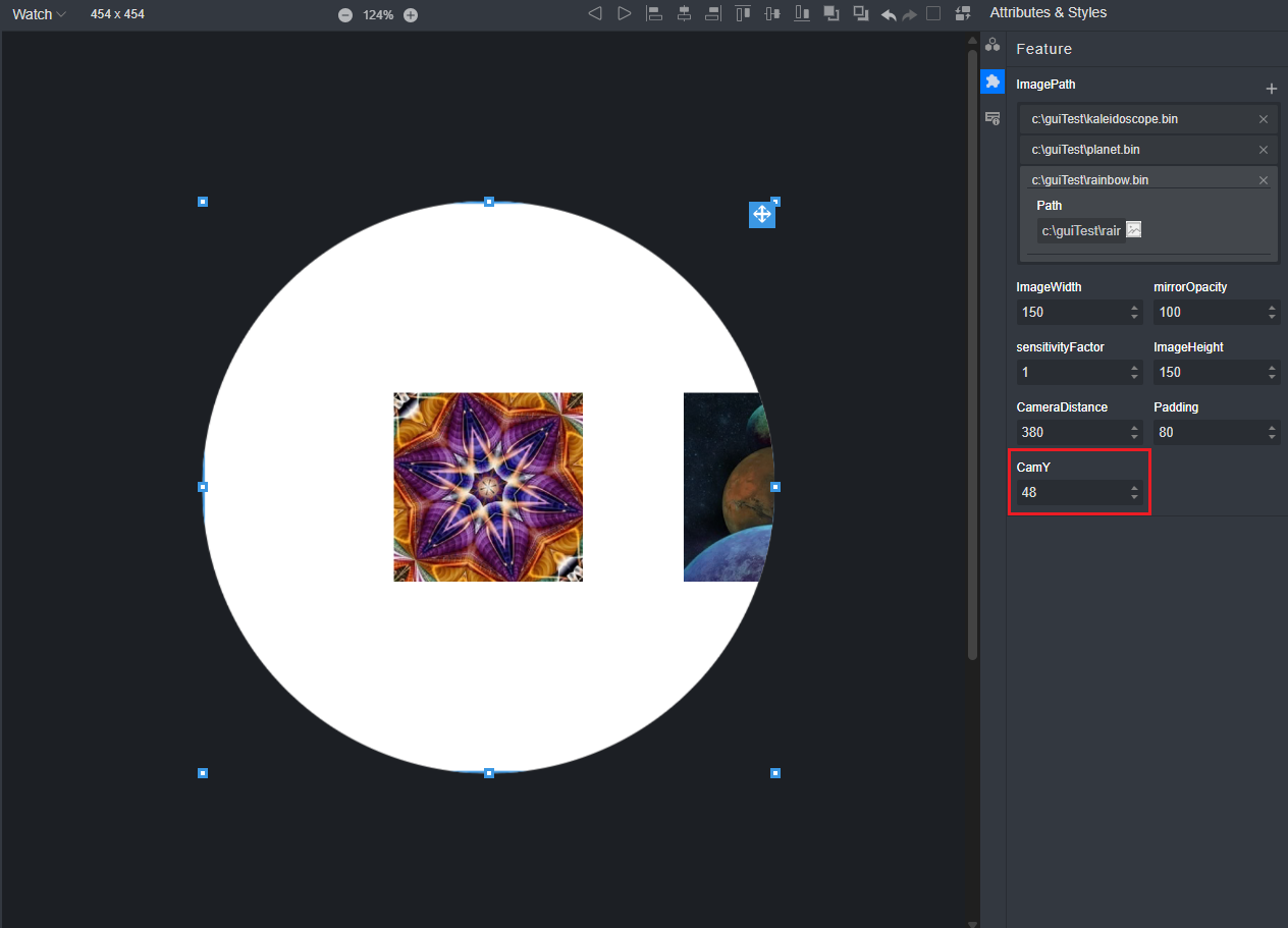 样式图标(Feature),在展开的Feature栏中修改Button组件的ImageX和ImageY属性调整图片位置(修改前需要设置DefaultImgSrc属性)。