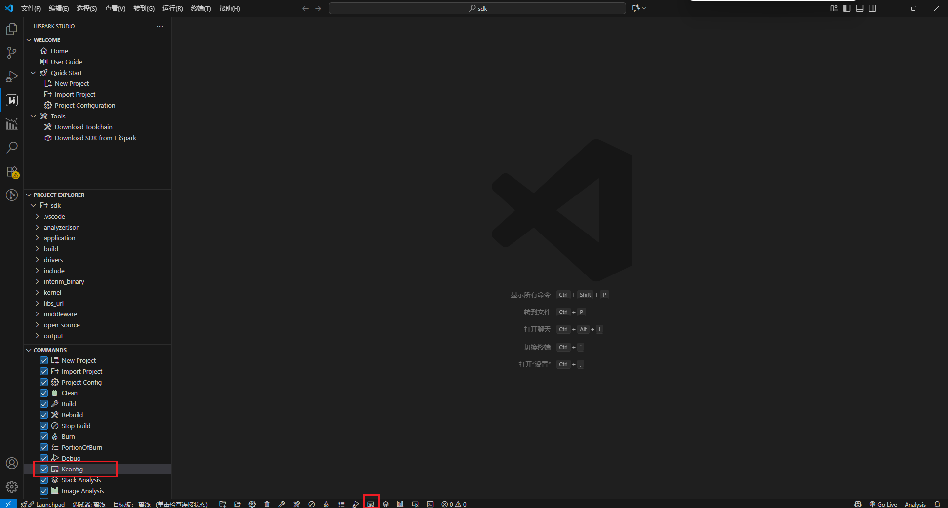 本文档主要描述IDE工具的安装及使用,IDE工具使用的是HiSpark Studio,该工具主要是用于代码的编辑、编译、镜像烧写。