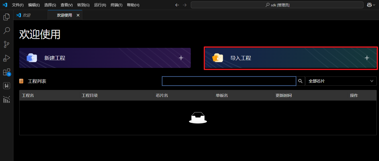 ① WELCOME:提供欢迎页、使用指南、创建导入项目等选项。