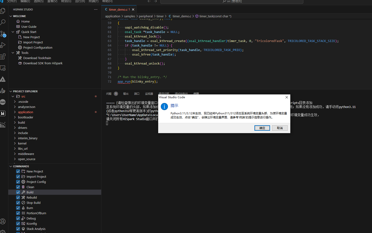 HiSpark Studio for VS Code插件面向智能设备开发者提供一站式集成开发环境。它提供给开发者代码编辑、编译、烧录和调试等功能,并支持C/C++语言,和64位Windows10或Windows11操作系统,该插件具有以下特点: