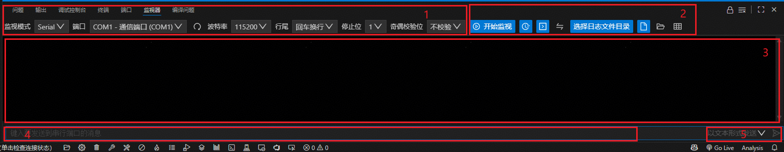 ⑤ 输出控制台:提供操作日志的打印、调试命令的输入及命令行工具等功能。