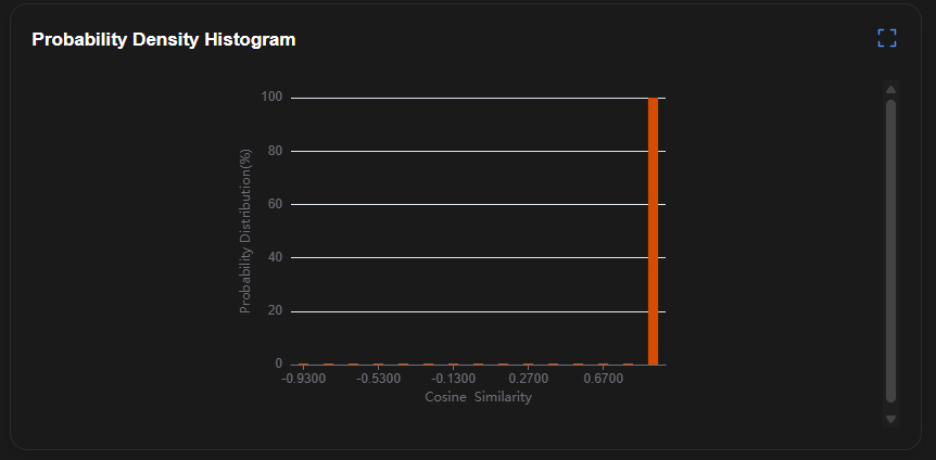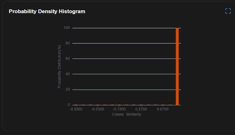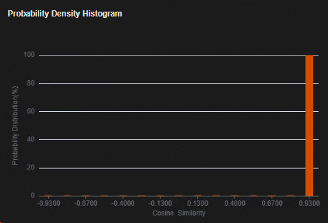 验证集的余弦相似度的分布图。横轴为余弦相似度,纵轴为验证集样本的百分比。 |