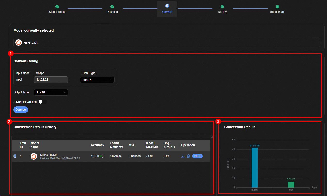 在Deploy页面下载转换好的exeom模型。