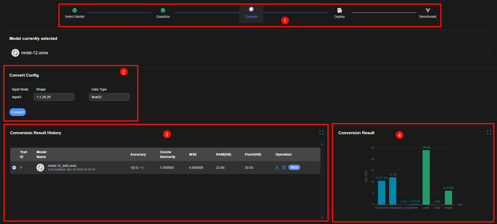 单击下载按钮下载模型量化、转换结果。 |