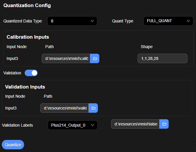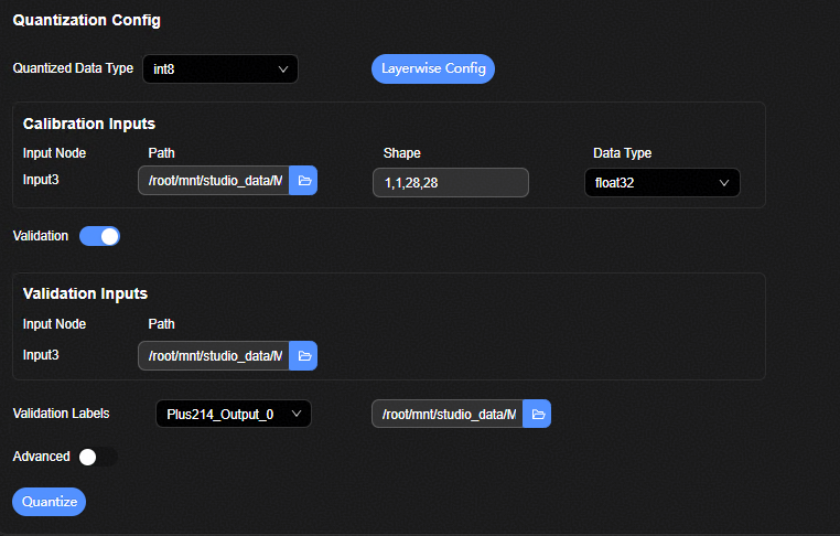 Path:验证集输入数据目录。输入文件夹路径,文件夹中包含和模型输入数据匹配的npy文件。 |