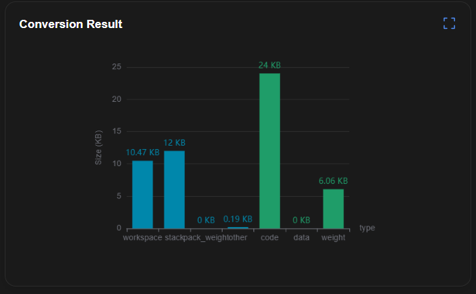 转换结果显示界面如图1所示。该界面以柱状图的形式显示转换后模型以及图调试信息文件的大小。