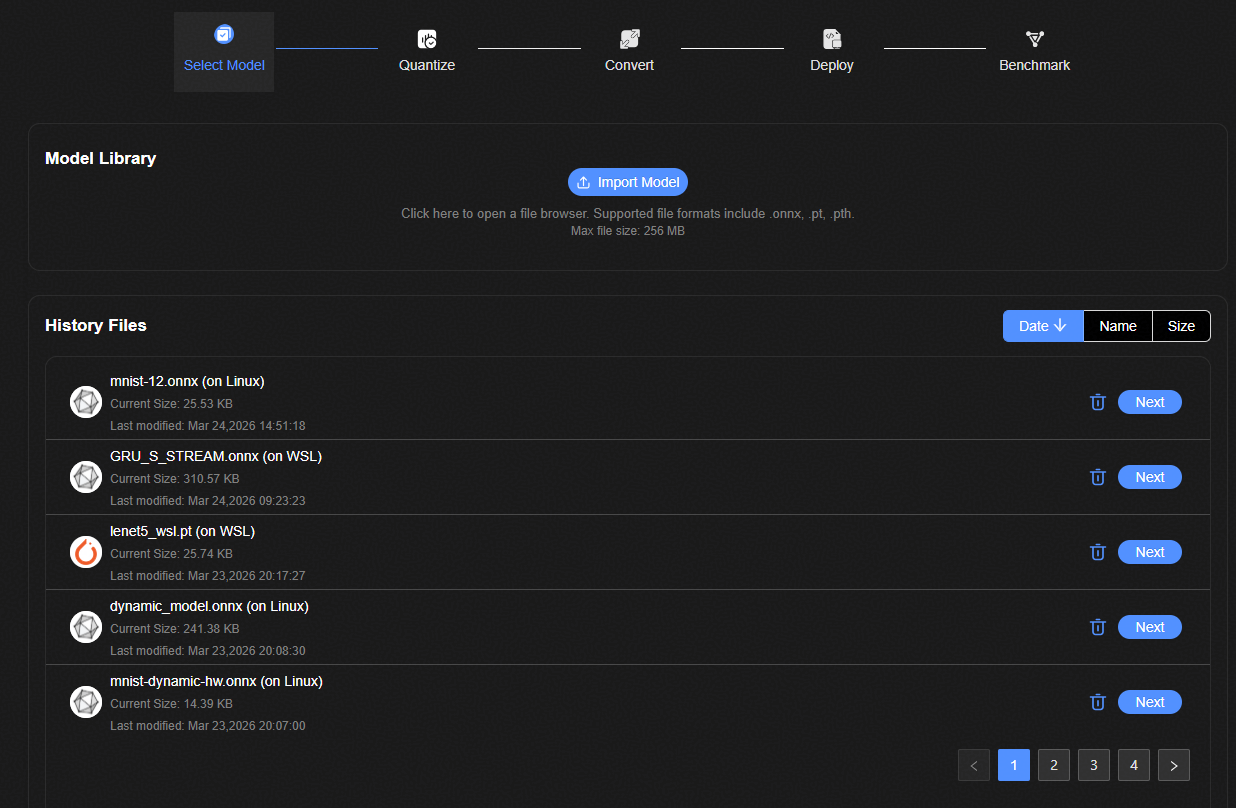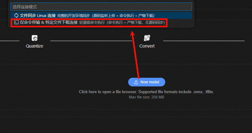 导入ONNX/TFLITE等格式的AI模型,初始化开发环境。