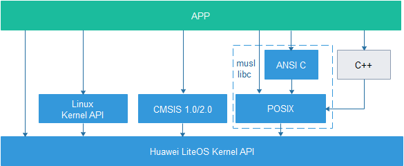 开发驱动程序只能用LiteOS的接口,上层APP建议用POSIX接口。