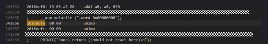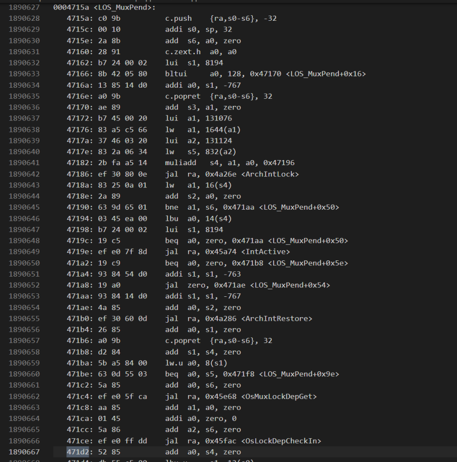 mepc:写被保护地址的指令地址,可从反汇编文件中找到对应代码所在行和函数;