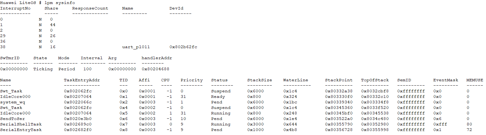 Shell:LiteOS Shell使用串口或Telnet工具接收用户输入的命令,通过命令的方式调用、执行相应的应用程序。LiteOS Shell支持常用的基本调试功能,包含系统、文件、网络和动态加载等相关命令,同时支持用户添加自定义命令。