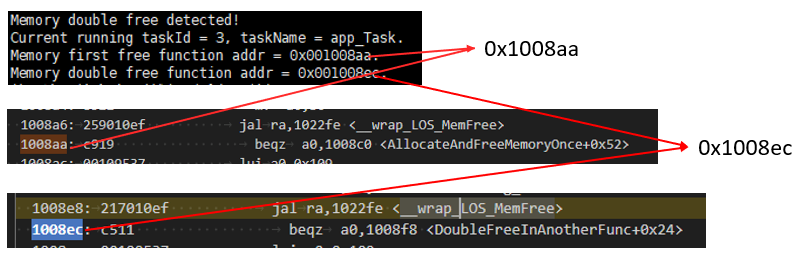使用LOS_MemTaskIdGet函数获取一个指针所属的task,返回异常(ret != taskID)。