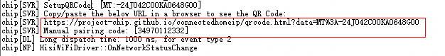 开发测试阶段,二维码及手工配对码会在Matter设备启动时打印到串口。