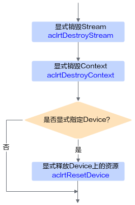 有初始化就有去初始化,在进程退出之前,需调用aclFinalize接口实现去初始化。