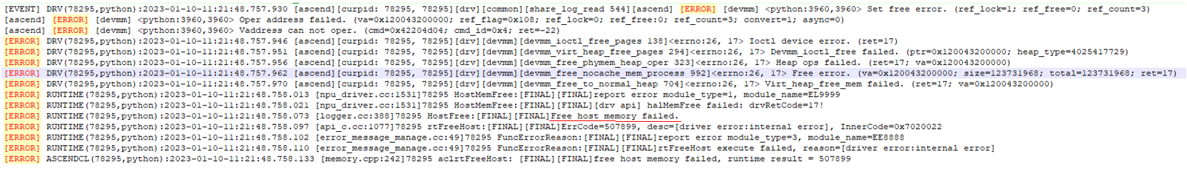 当Runtime执行报错,在应用程序日志中Runtime打印了PrintAicpuErrorInfo的错误信息,且提示“ErrCode=507017, desc=[aicpu timeout]”。