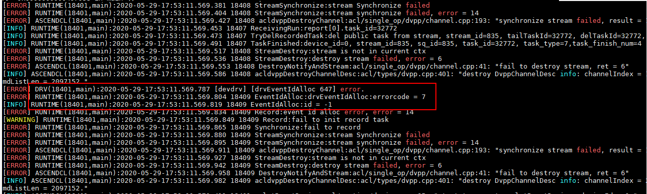 [ERROR] RUNTIME(16243,msame):2022-09-22-11:27:01.794.482 [logger.cc:305]16243 StreamSynchronize:[EXEC][DEFAULT]Stream synchronize failed, stream = 0x5643fe3e28d0