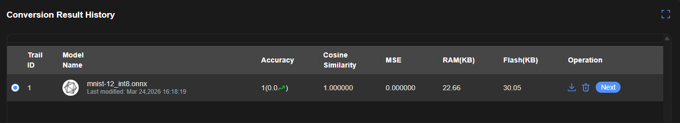 单击下载按钮下载模型量化、转换结果。 |