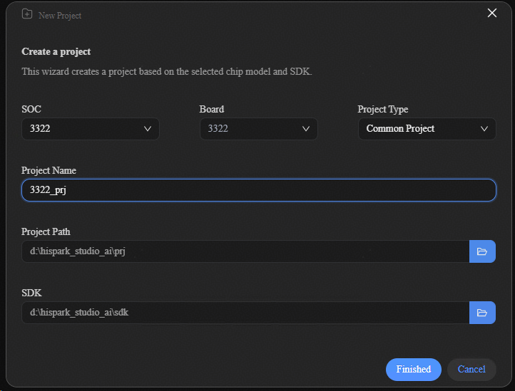 若用户首次使用HiSpark Studio AI,单击“New Project”即可创建新项目。若用户需要项目迁移,也可以选择“Import Project”导入已有项目。